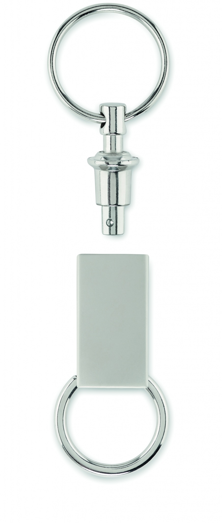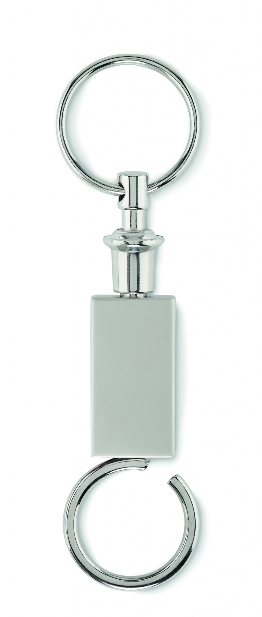 2 in 1 key ring in zinc Alloy. Pull apart key ring and it has 2 key rings.