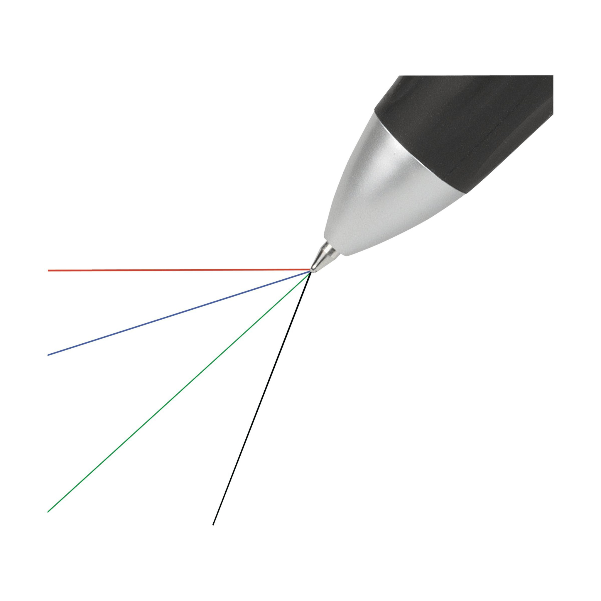 4-colour ballpoint pen with non-slip rubber grip. Equipped with blue, green, red and black ink.