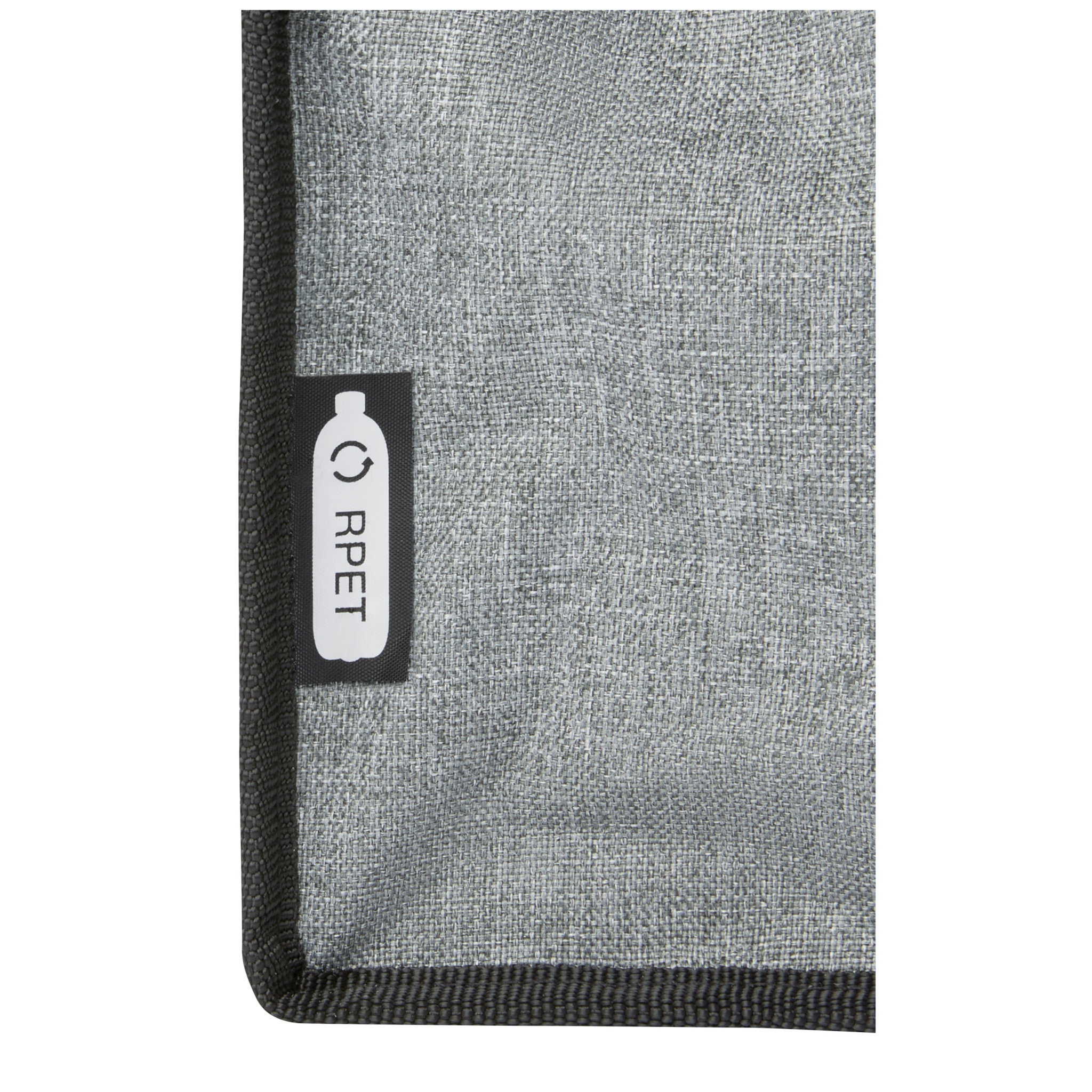 The Reclaim 4-can cooler bag features an exterior made from 100% GRS certified recycled PET plastic, making it a sustainable choice. Features a fold-over closure and a grab handle for easy carrying.