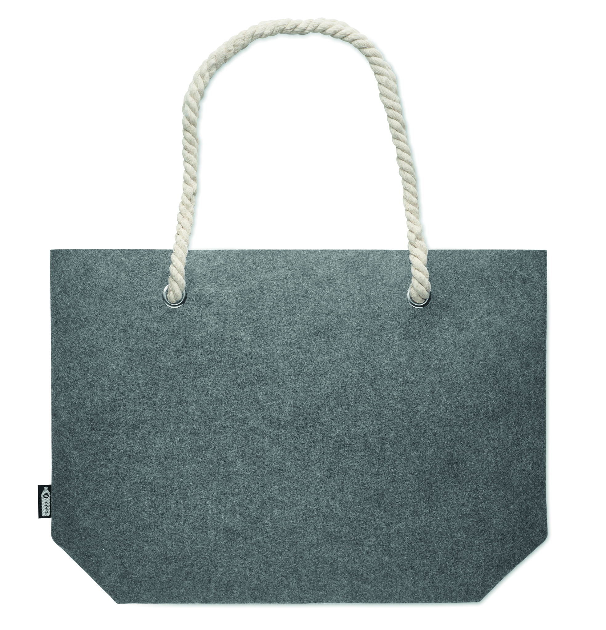 RPET felt beach bag or shopping bag with cord handle. Felt thickness: 2 mm.