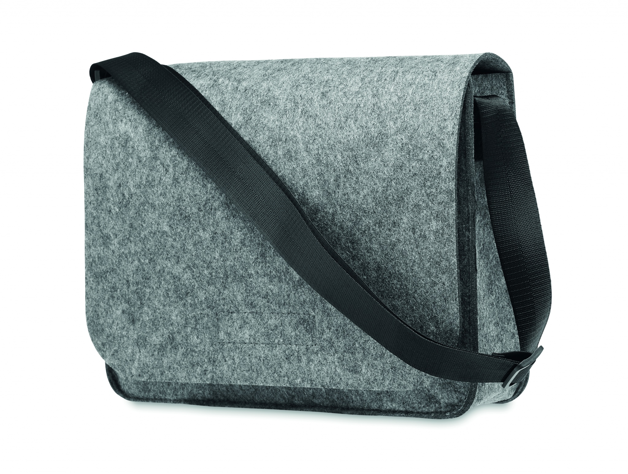 RPET felt messenger or laptop bag with hook and loop closure. Fits a 15 inch laptop.