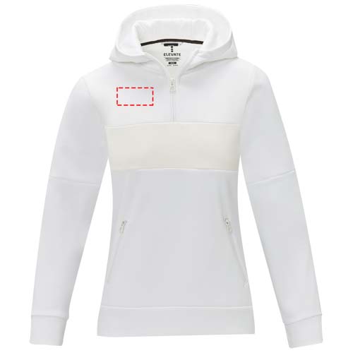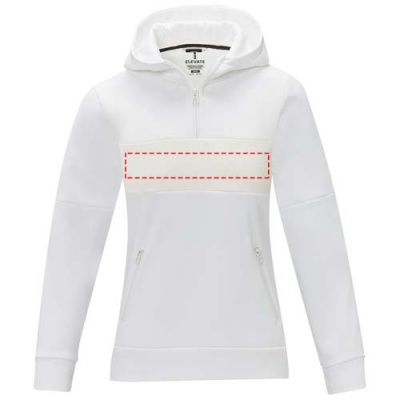 The Sayan women's half zip anorak hooded sweater – a unique combination of performance and style. The anorak design combines fashion and function seamlessly, featuring a quarter zip for versatility in layering. Made from a 350 g/m² blend of polyester and Sorona® knit. The Sorona® fiber enhances the jacket's eco-friendliness by incorporating a sustainable element without compromising on performance. The contrast fabric on the front panel, made of 280T ripstop nylon, adds to the design with its durability and texture and is the ideal location to showcase your brand. Whether you're embarking on an outdoor adventure or simply navigating your daily routine, the Sayan hooded sweater effortlessly combines fashion with function. This sweater is designed with a fitted shape for a feminine look.