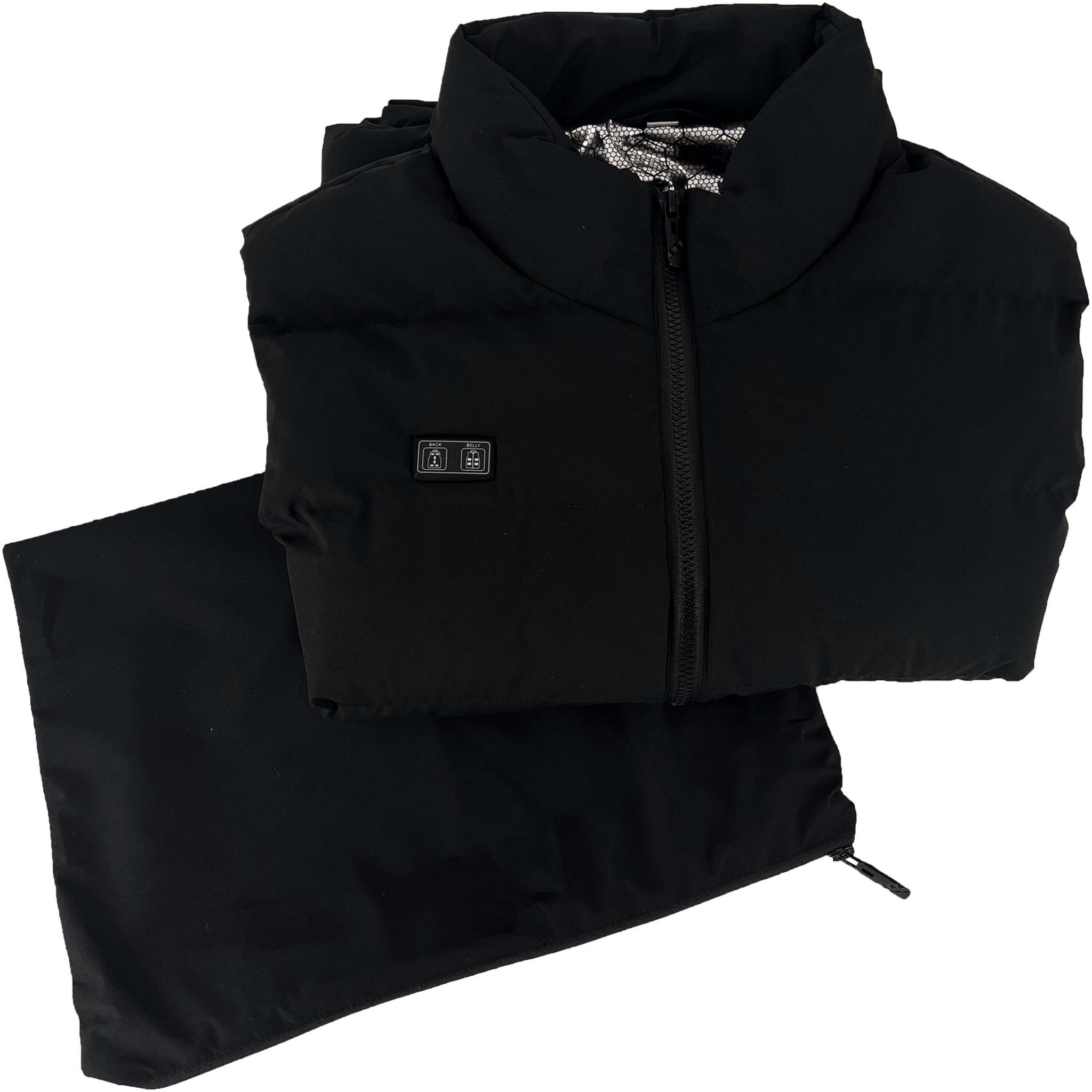 Innovative, versatile and windproof bodywarmer that offers a homogeneous warmth thanks to its 11 heated pads located on the front, back, and the top of the bodywarmer. You can choose between 3 temperature levels (low, medium, and high). Four different sizes are available: S-M (length 58 cm x chest 48 cm), M-L (length 64 cm x chest 54 cm), and L-XL (length 66 cm x chest 60 cm), XXL- XXXL (length 74 x chest 66 cm). The bodywarmer has been designed with side zippers to be perfectly adapted to any body shape and for people who want to maintain their freedom of movement in cold weather. A 10.000 mAh power bank is included and already connected for easy use. Packed in a TPU pouch (38 x 30 cm).