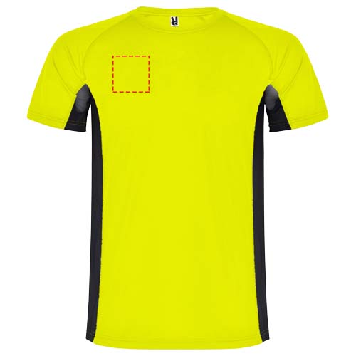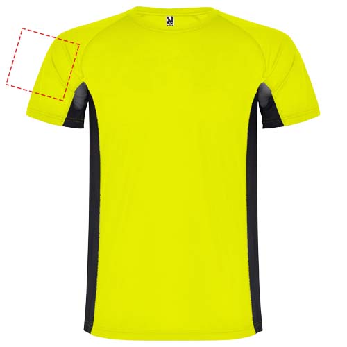 Technical and breathable fabric. A combination of two polyester fabrics: Main fabric in birds eye, side panels and inner sleeve in microperforated fabric. Crew neck with inner reinforced covered seams. Removable label...