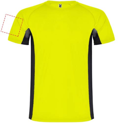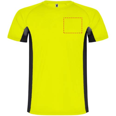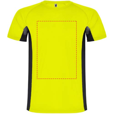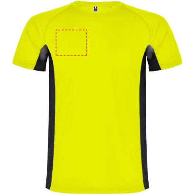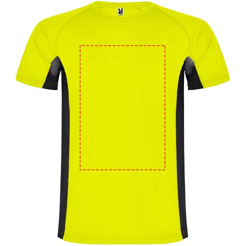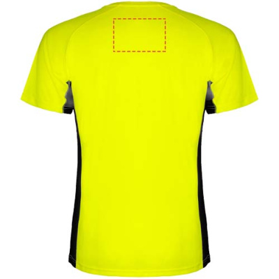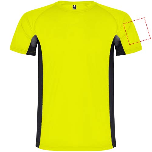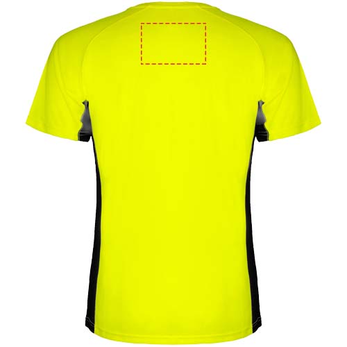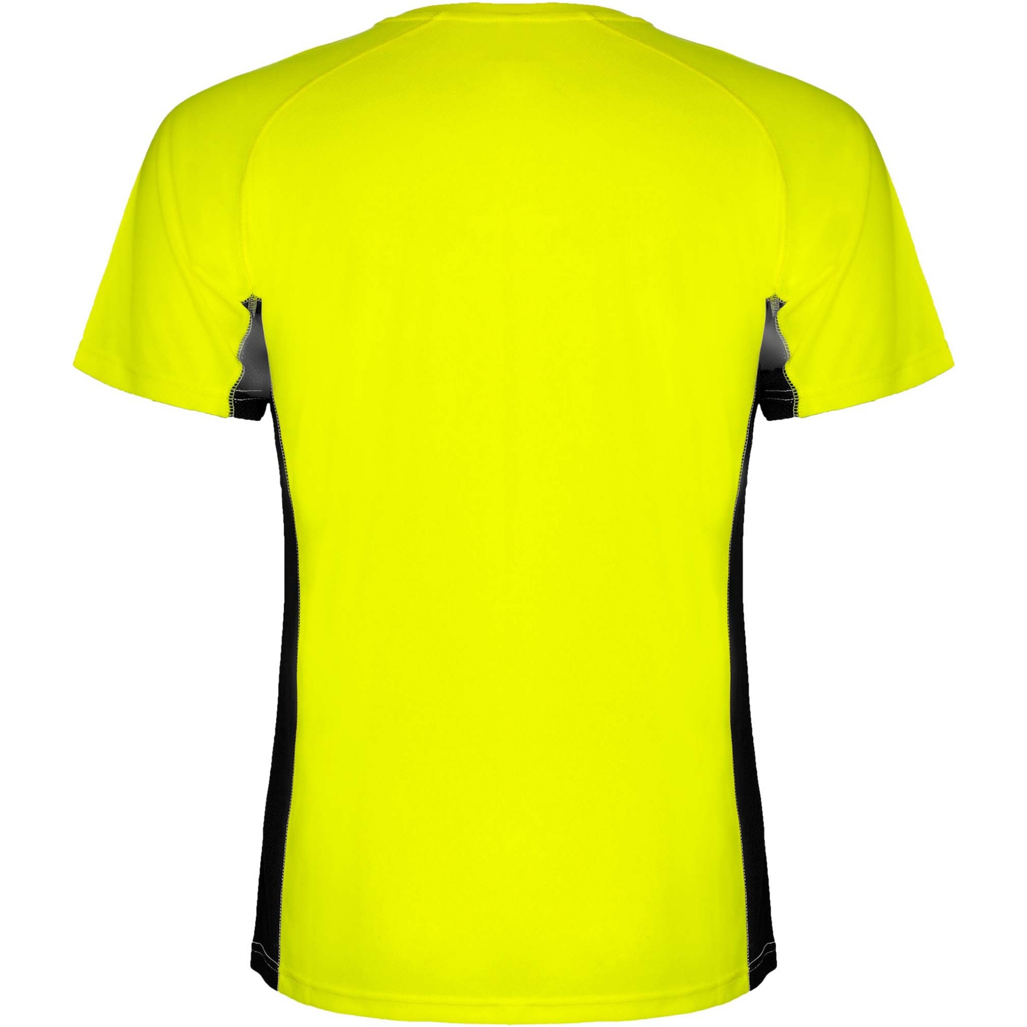 Technical and breathable fabric. A combination of two polyester fabrics: Main fabric in birds eye, side panels and inner sleeve in microperforated fabric. Crew neck with inner reinforced covered seams. Removable label.