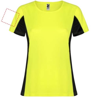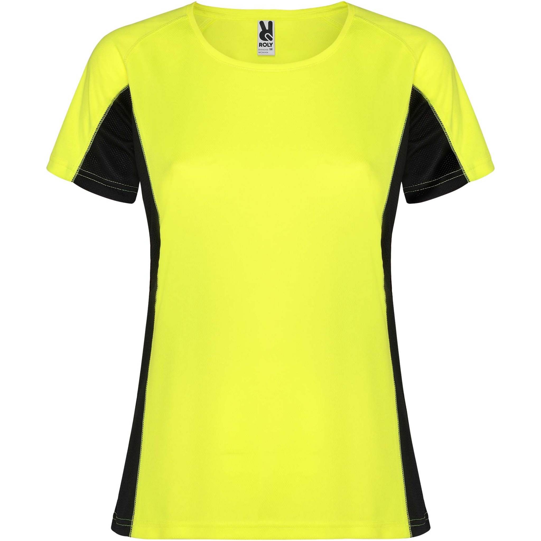 Technical and breathable fabric. A combination of two polyester fabrics: Main fabric in birds eye, side panels and inner sleeve in microperforated fabric. Crew neck with inner reinforced covered seams. Removable label.