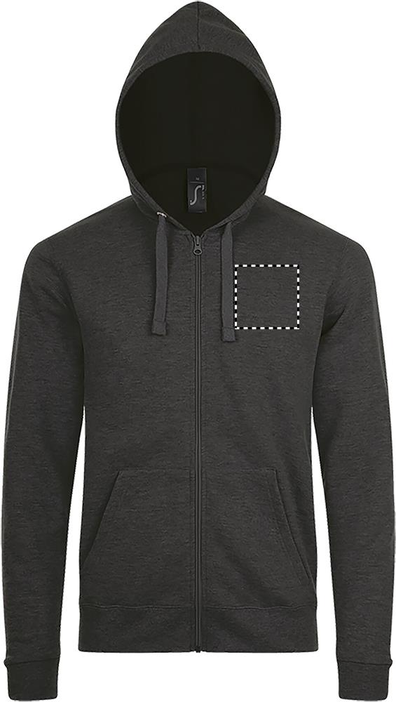 SOL'S STONE Unisex zip hoodie/ Hoodie with full zipper and with kangaroo pocket at the front. Hood with drawstring with tone-on-tone cords. Ribbed cuff at the hem and sleeves. Side seam. No neck label. Fabric details: 260g/m², brushed material in 50% cotton - 50 % polyester, OEKO-TEX®. Only sold with print