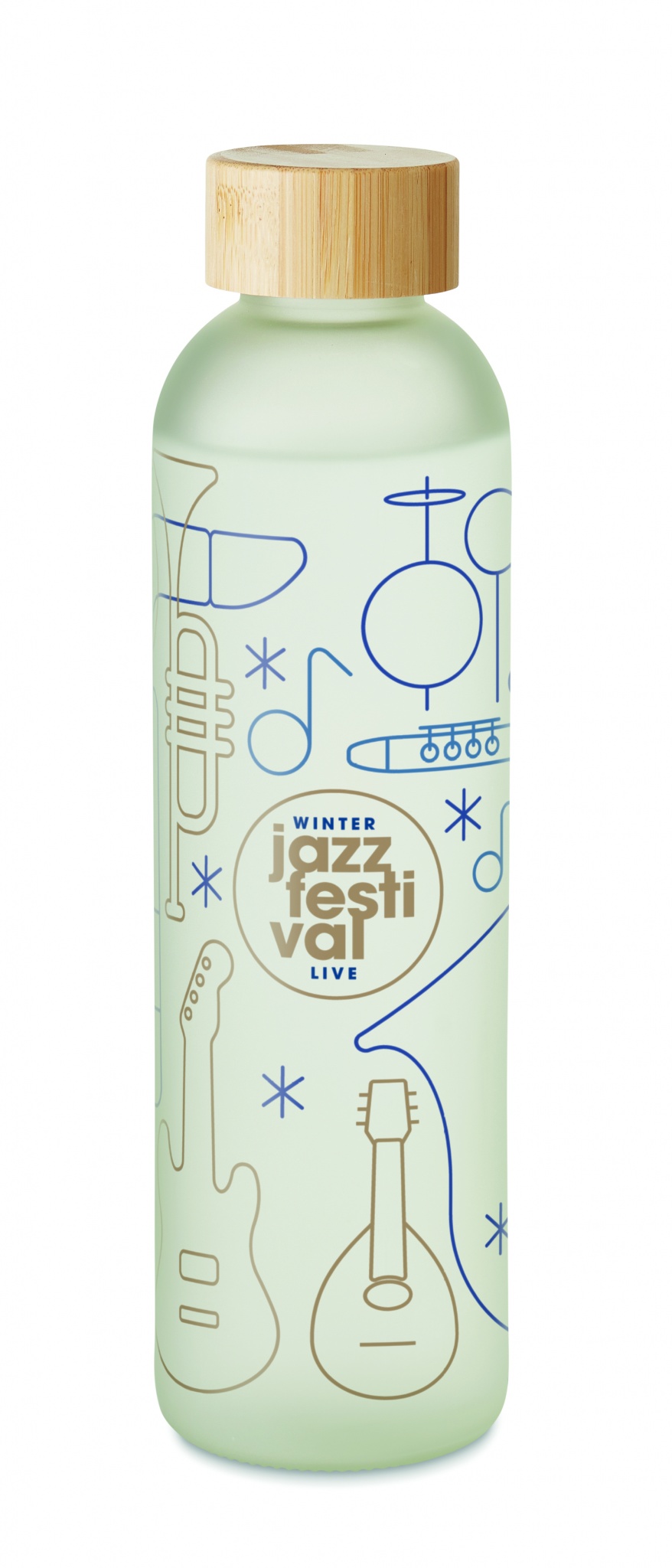 Glass bottle with special coating for sublimation and bamboo lid. Capacity: 650 ml. Bamboo is a natural product, there may be slight variations in colour and size per item, which can affect the final decoration outcome.