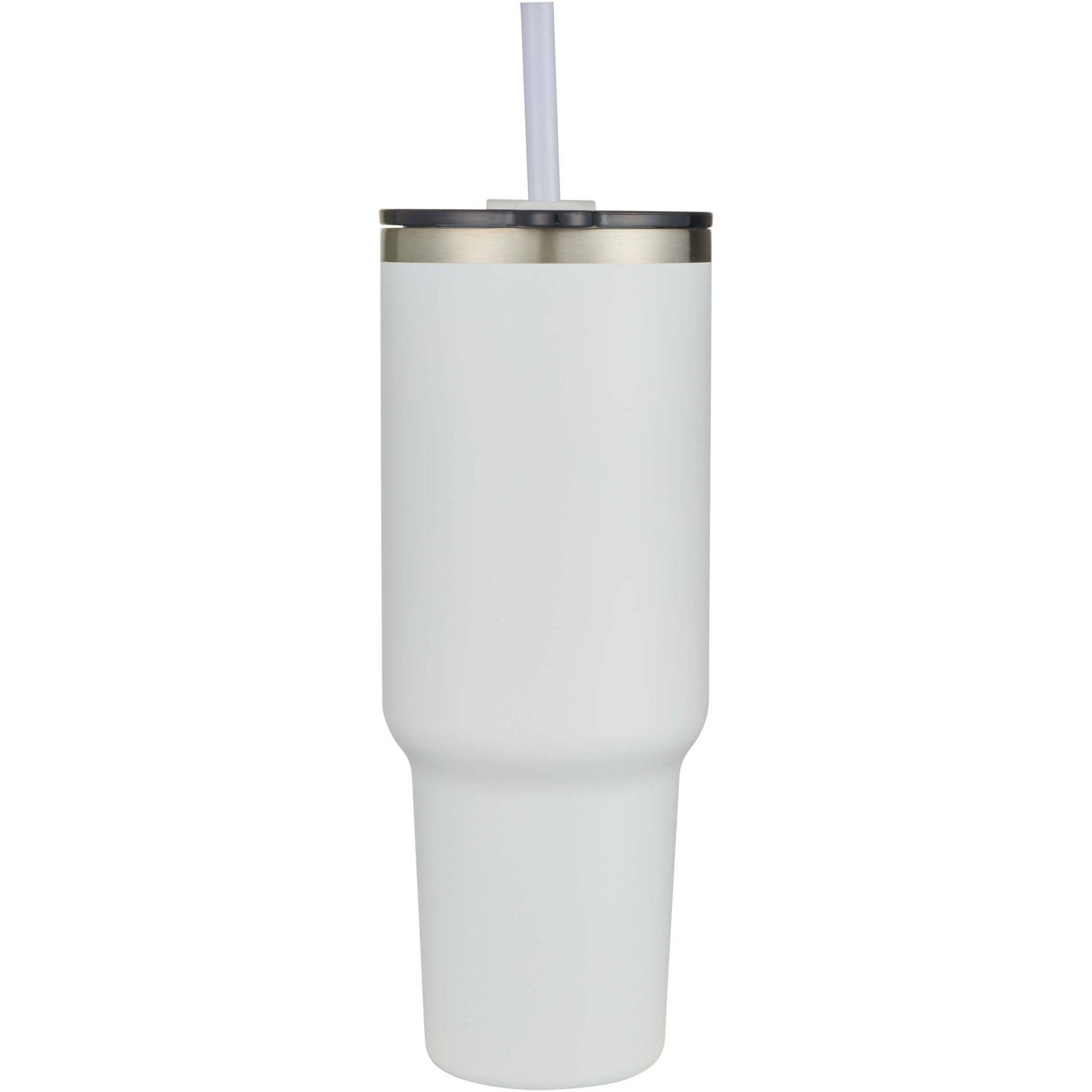 RCS certified double walled copper vacuum insulated tumbler, constructed using 91% post-consumer recycled stainless steel that will keep drinks cold for at least 24 hours, or hot for 9 hours. Features a Tritan straw, and a lid slider function to prevent spills. The 100% recycled plastic press-on swivel lid securely holds the straw in place, and can easily be rotated to expose the drink opening. Durable exterior powder coating. Volume capacity: 1200 ml. Hand wash only.
