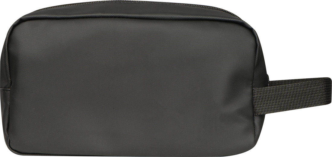 High-quality padded toiletry bag made of polyester with PU coating. It features a main zippered compartment and an additional front zip pocket, as well as a carrying loop. Durable and water-resistant, perfect for travel and daily use.