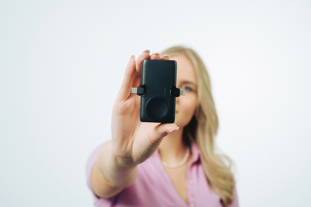 Carry 20W portable power in your pocket and be ready to fast charge on the go wherever you are! Urban Vitamin San Diego is a lightweight but powerful 5000mAh power bank. With dual fast charging options to re-charge via the integrated iOS connector (for iPhone 14 and older) and state-of-the-art Type-C output, you can charge your phone without the need to bring any cables! You can even charge two items at the same time. All outputs offer ultra-fast 20W charging to re-charge up to 50% in less than 30 minutes. Beside two integrated connectors, the item also has a USB C output if you wish to use your own cable or to fast re-charge the powerbank . It comes with an integrated watch charger to charge all recent Apple watch models. It also features an integrated stand to charge your phone while watching movies or listening to music. Made with RCS recycled ABS and recycled PC, the total recycled content is 24% based on total item weight. PVC free and plastic packed in plastic reduced box.
