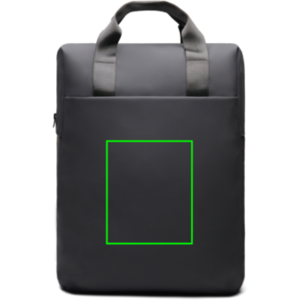 An easy-to-handle bag with a sleek design. Carry it as a tote bag or a backpack. The bag features a wide zippered opening for convenient packing of your laptop and other valuables. A strap on the back allows it to be attached to a trolley for smooth travel. It also includes a large front pocket, an inner pocket, and a practical bottle holder. Certified by RCS (Recycled Claim Standard), RCS certification guarantees that the entire supply chain of recycled materials is certified. The total recycled content is based on the overall product weight. This product contains 19% RCS certified recycled polyester.