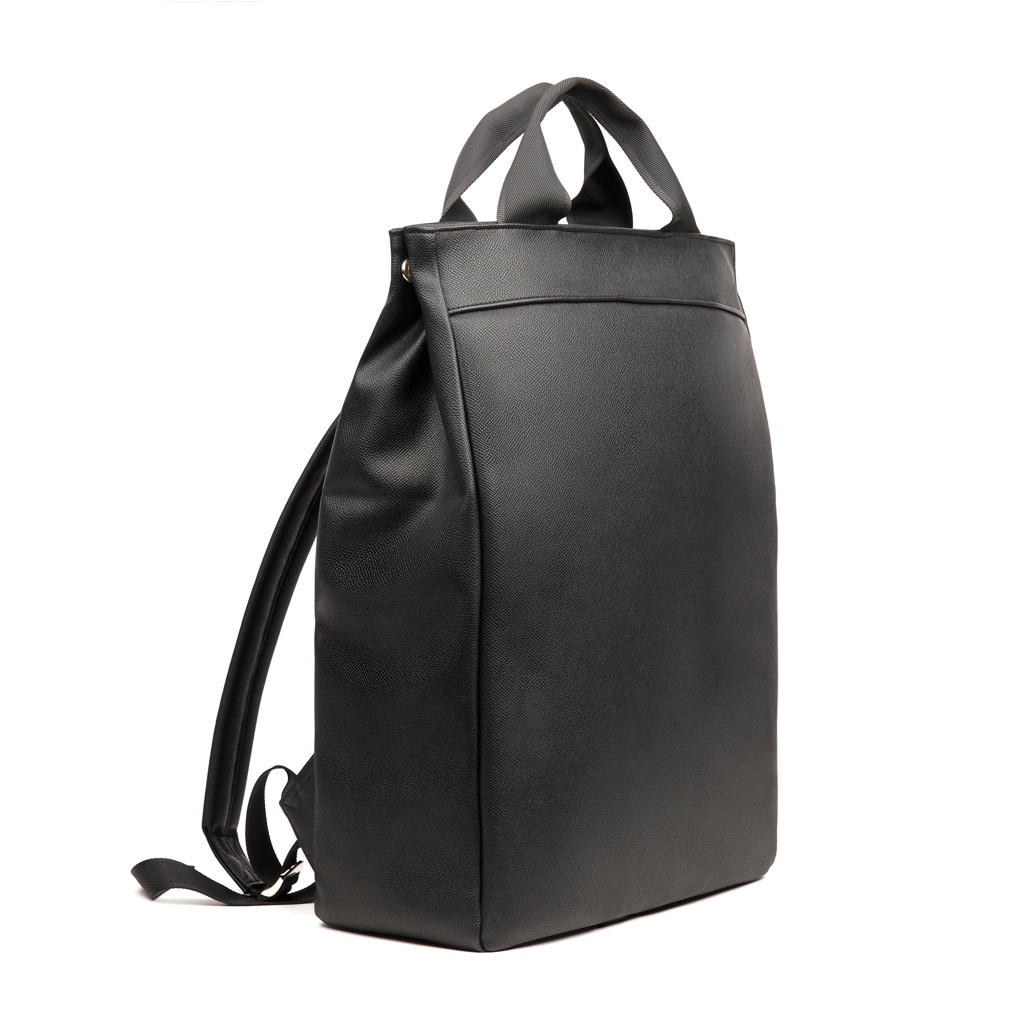 Effortlessly transition from the office to on-the-go with our understated and exclusive backpack. Sleek design and exclusive look. Features a padded computer compartment for added protection. Can be carried as a tote or as a backpack, making it versatile and convenient for any situation. The exterior of the backpack is made from recycled PU and the inside lining is made from recycled materials. Certified by RCS (Recycled Claim Standard), RSC certification guarantees that the entire supply chain of the recycled materials is certified. The total recycled content is based on the overall product weight. This product contains 27% RCS-certified recycled polyester and 8% RCS-certified recycled PU.Suitable for computers with an overall size of 17 inches. Please note that the dimensions of the display are not the same as the dimensions of the entire computer.