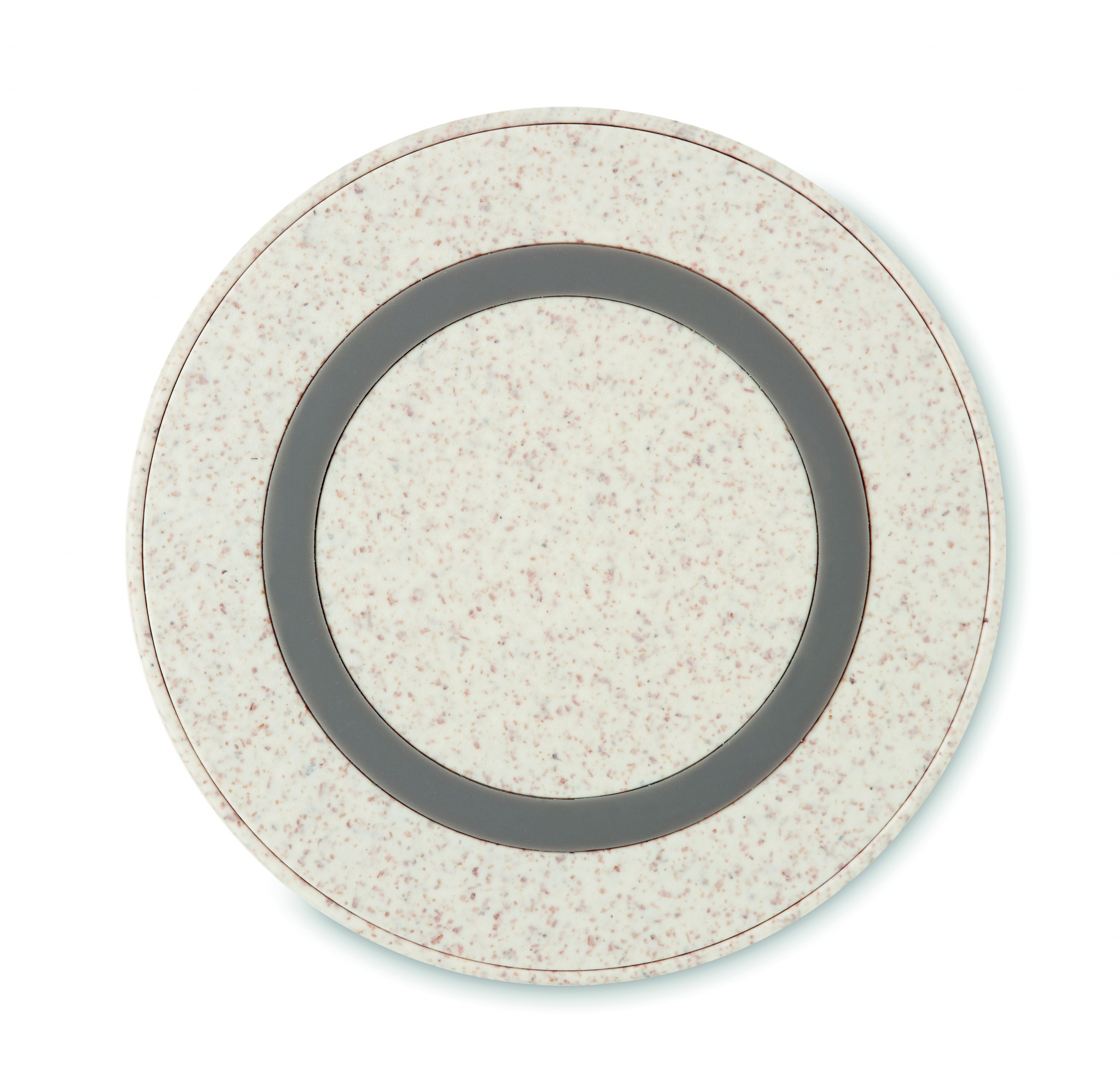 Wireless charger in wheat straw (35%) and ABS (65%). Connect device, place smartphone on it to begin charging. Output: DC5V/1A (5W). Compatible with latest Androids, iPhone® 8, 8S and X and newer.