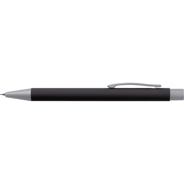 Writing set consisting of a blue-writing metal ballpoint pen with a plastic jumbo refill and a matching mechanical pencil with two 0.5mm pencil leads. Both pens feature a rubber finish surface for a pleasant feel, and the case is made from recycled PU.