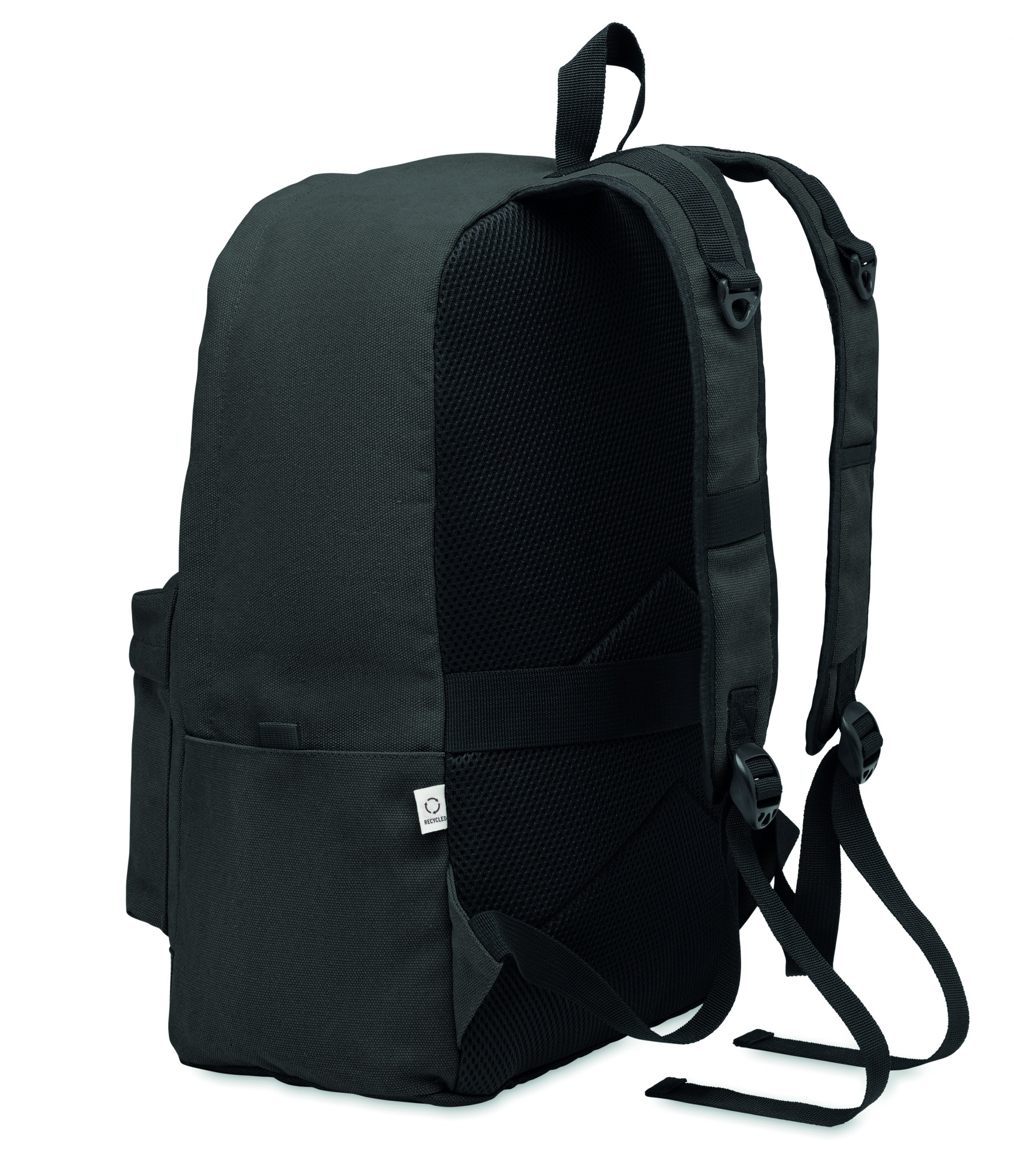 15-tollise sülearvuti seljakott, valmistatud taaskasutatud eelkasutatud puuvillast, kohandatava trükilahendusega, Must