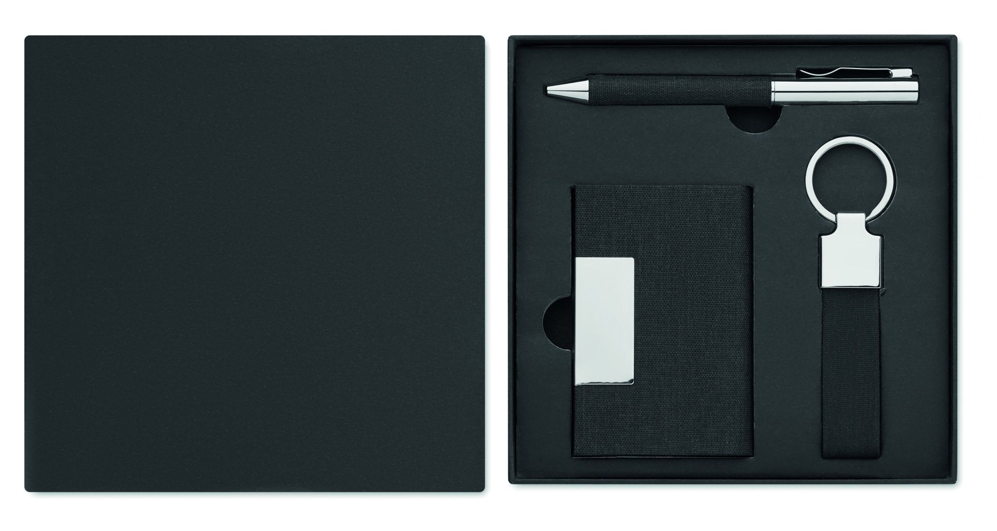 3-osaline kinkekomplekt kinkekarbis, kohandatava trükilahendusega, Must