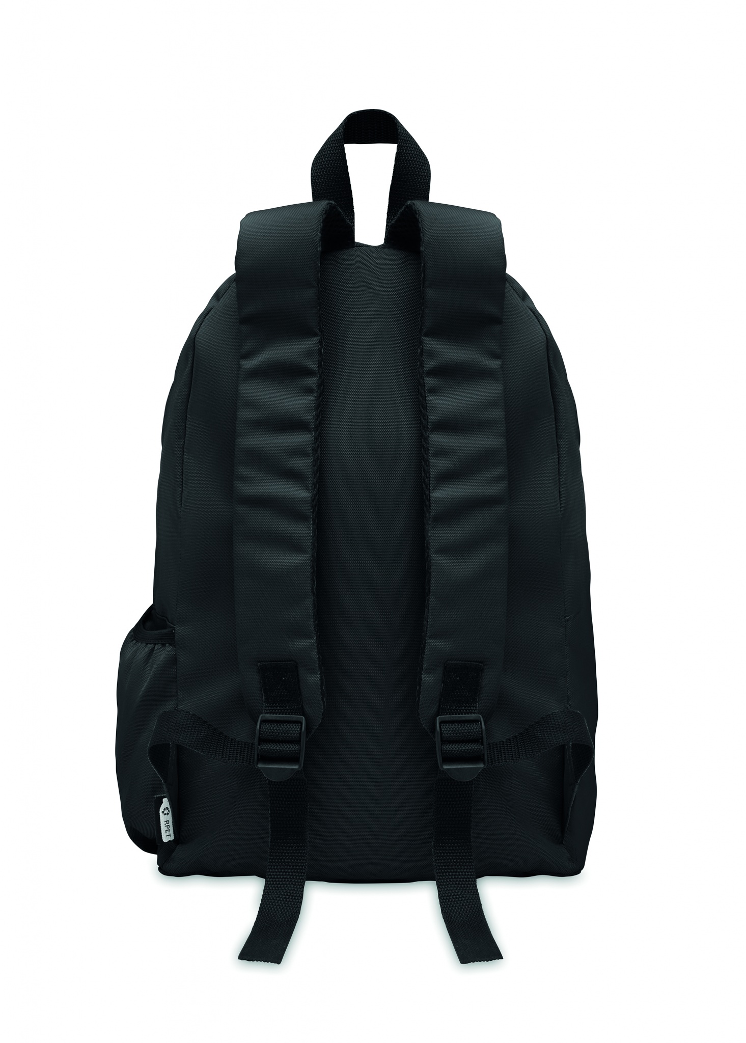 Seljakott 600D RPET polüestrist lukuga välistaskuga. Polsterdatud seljaosa ja küljes pudeli sahtel.