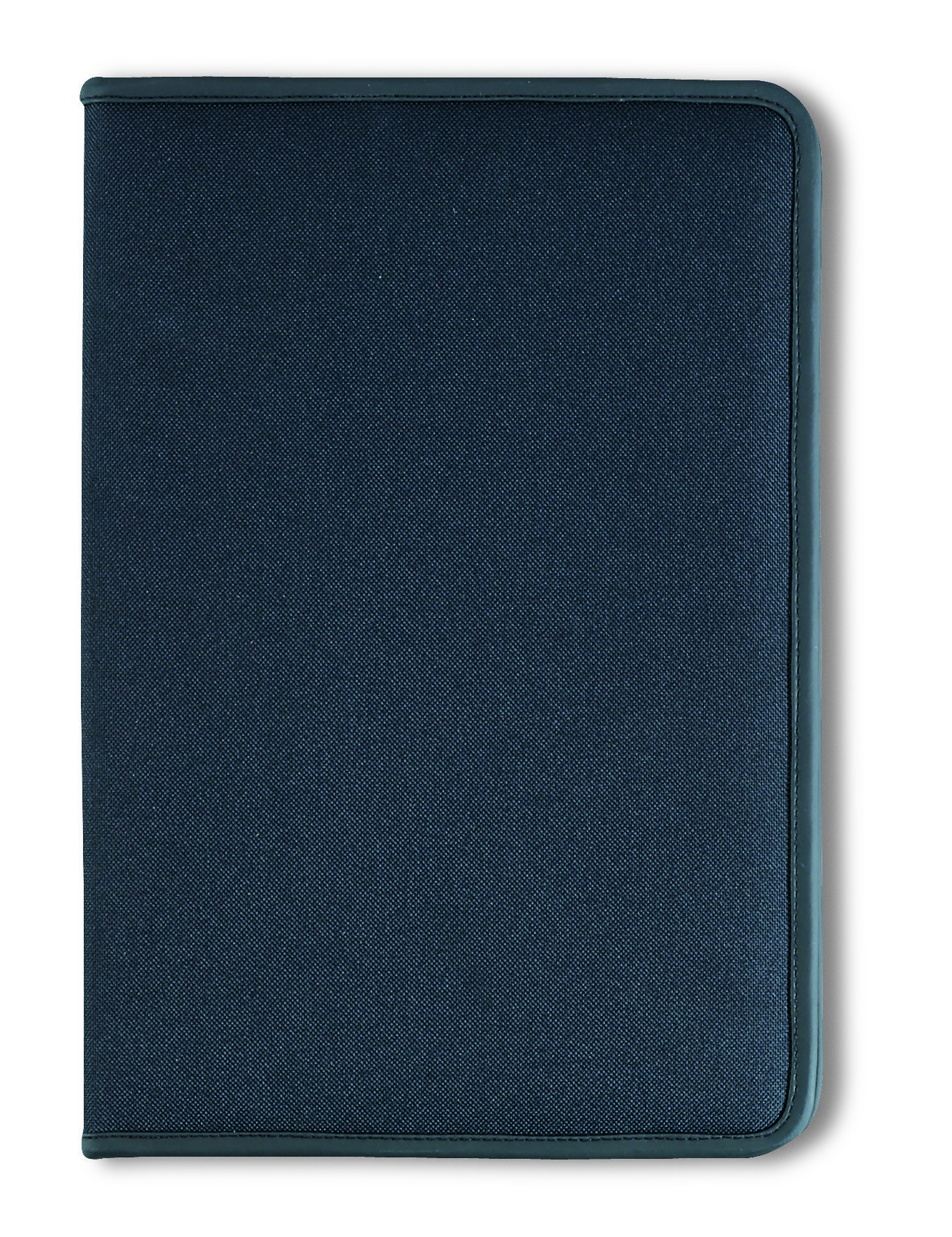 A4 konverentsimapp. 600D polüester ja 210T vooder. Tõmblukuga. A4 20 joonelise lehe märkmik. 4 sektsiooni. Kaardi auk.