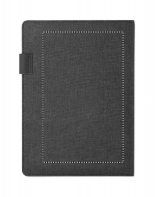 A4 konverentsimapp PU-nahast kaantega. Kaasas 4000 mAh akupank. Sisseehitatud mikro-USB C-tüüpi pistik, 20 joonelise lehega märkmik, mitu sisemist sektsiooni, magnetiline sulgur, elastne pliiatsihoidja.
