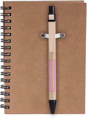 Taaskasutatud papist märkmik 120 leheküljelise taaskasutatud paberi ja sinise tindiga pastapliiatsiga. Trükime teie logo kaanele.