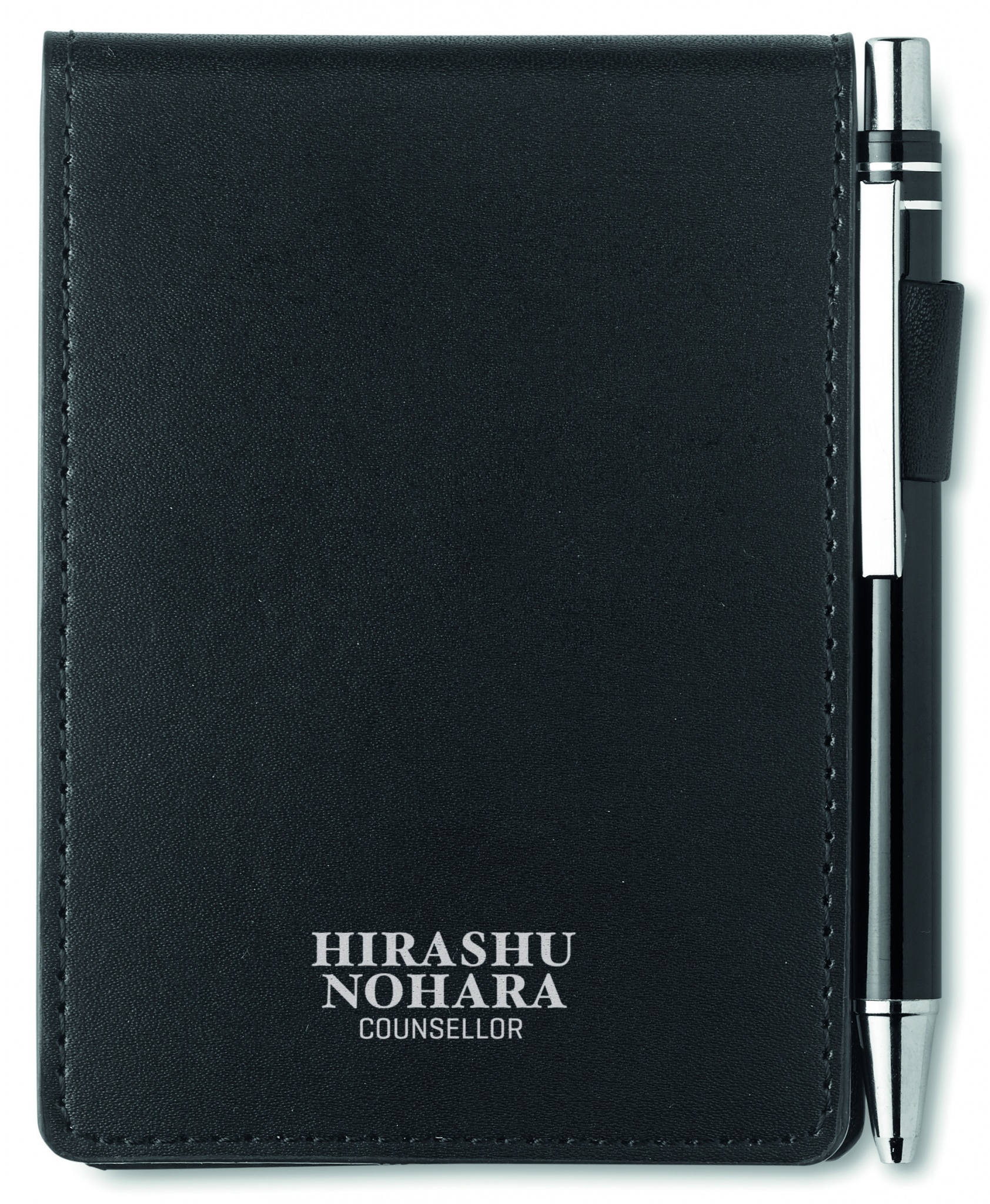 Logotrade meene foto: A7 märkmik PU-kotis koos pliiatsiga