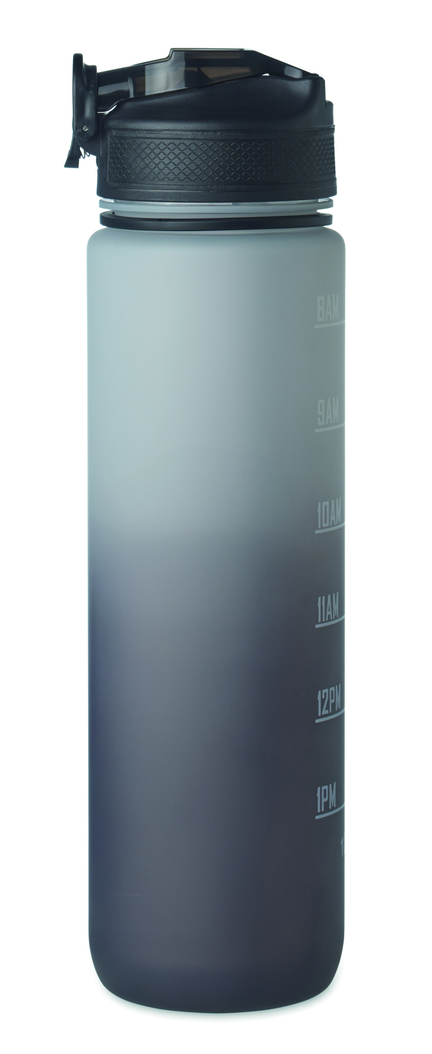 Spordiveepudel RPET-st integreeritud kõrre, pehme silikoonist huuliku, motiveeriva ajamärgistuse, ühe käega avatava klapiga kaane, turvaluku ja kanderihmaga. Mahutavus 1L.
