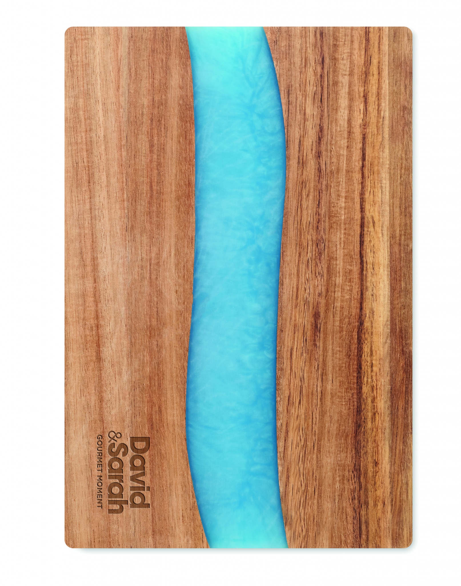 Akaatsia puidust lõikelaud epoksüvaigu detailiga. Puit on looduslik toode, ühe eseme värvis ja suuruses võib esineda väikesi erinevusi, mis võivad mõjutada lõppviimistlust.