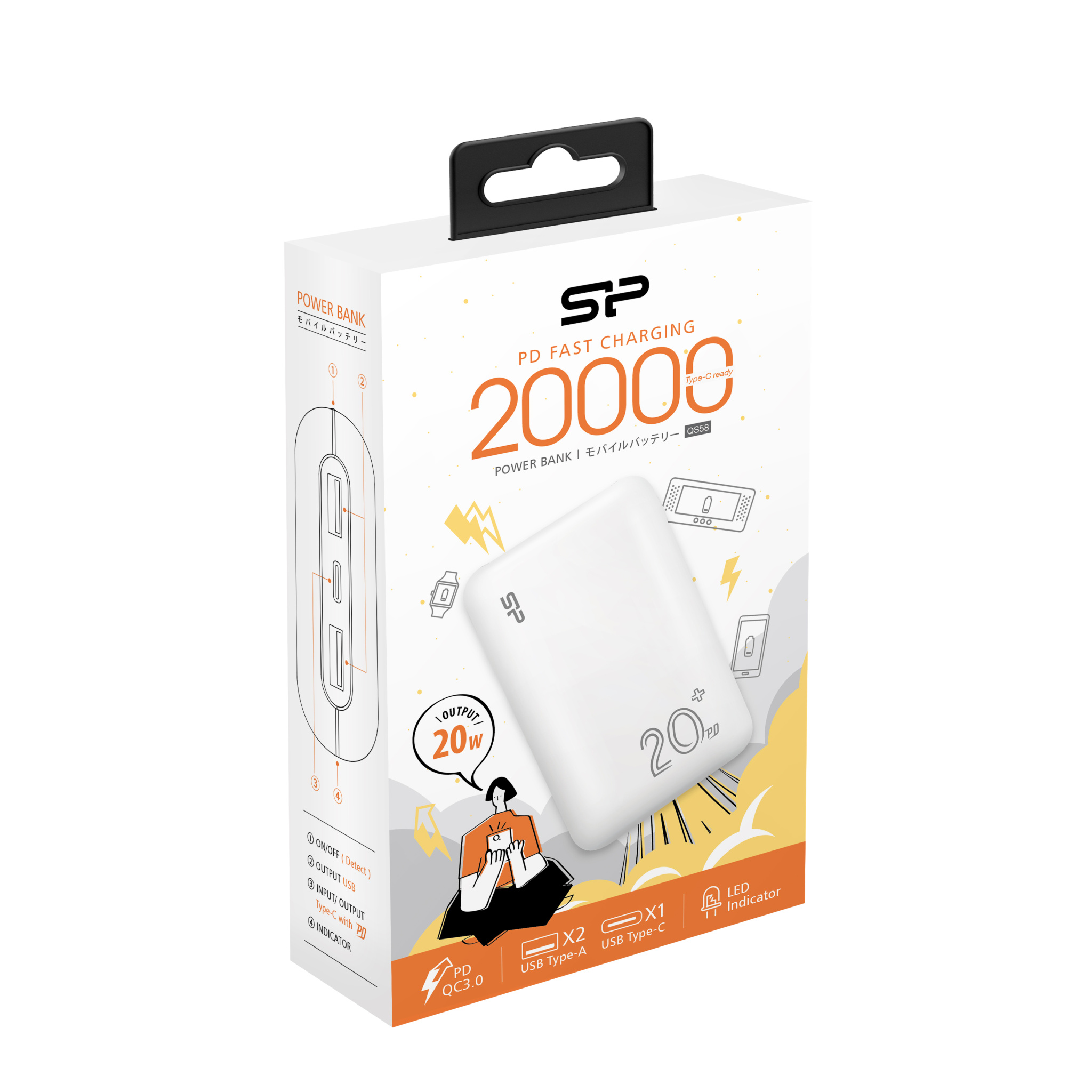 Akupank Silicon Power QS58 20000 mAh, valge