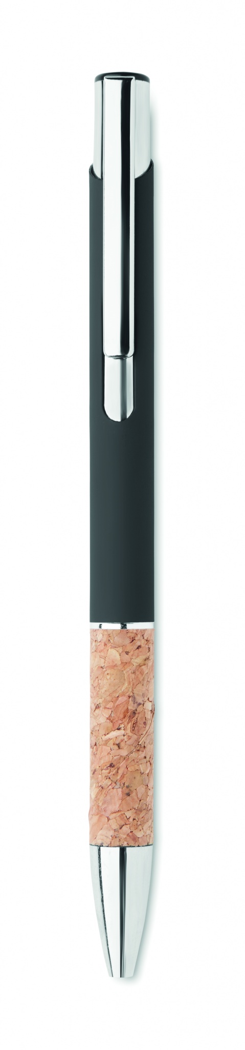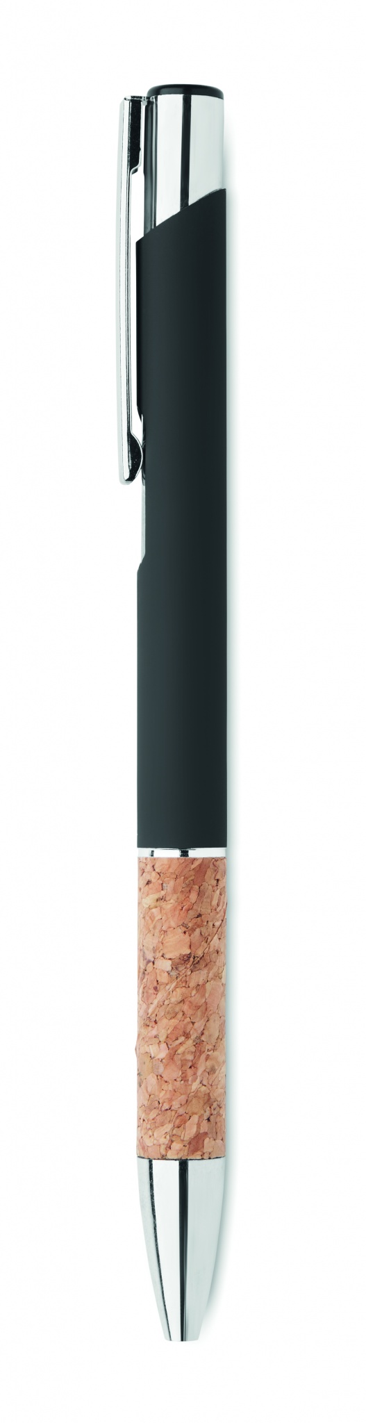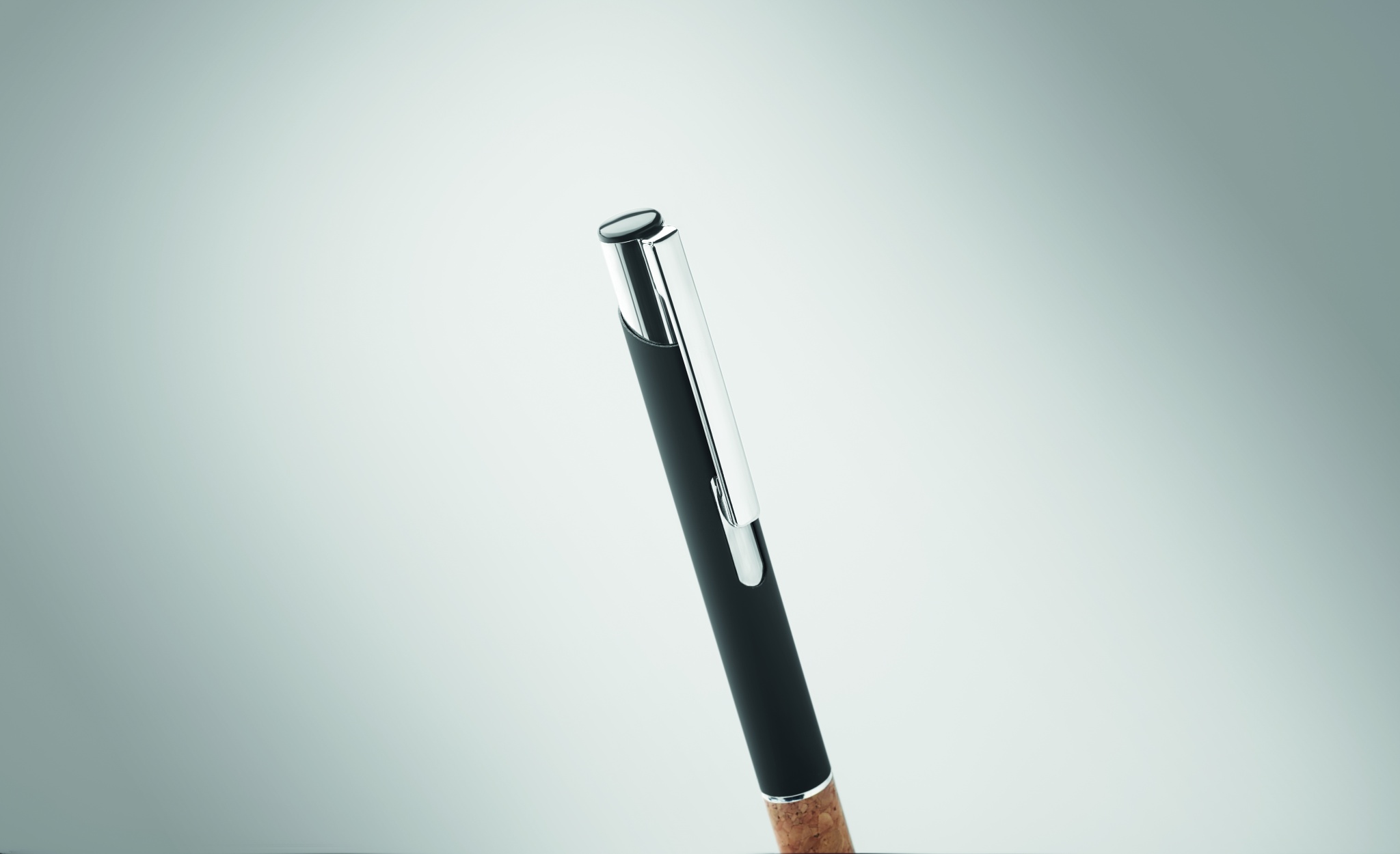 Alumiiniumist valmistatud pastapliiats, mille käepide on korgist, Must