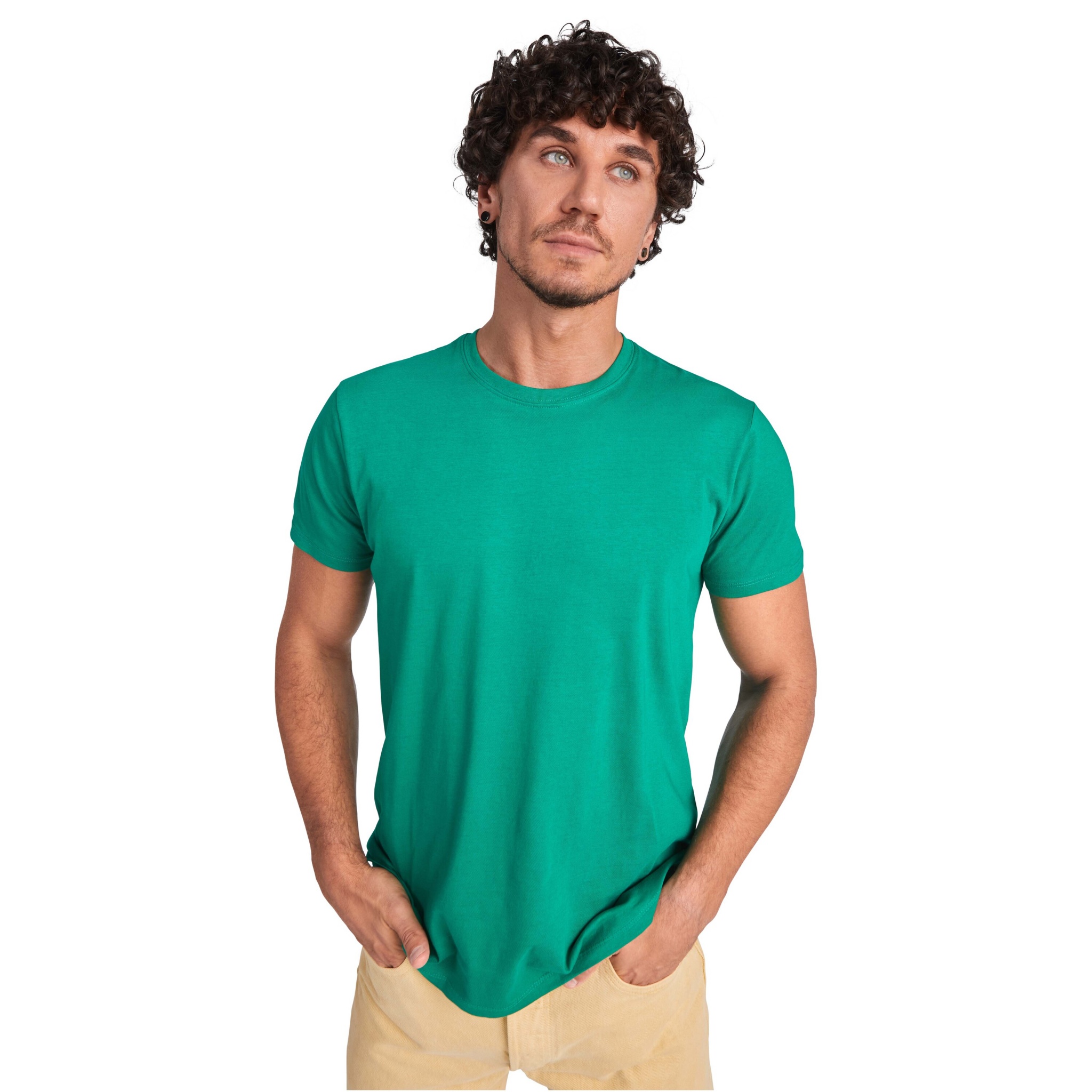 Torukujuline lühikeste varrukatega T-särk. 1x1 soonik kaelus sisemiste kaetud õmblustega.
