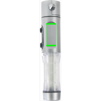 Avariivalgusti, hõbedane ABS-korpus, 1 valge LED ja 9 punast välklampi küljel, lõikur, aknapurustaja ja magnetalus auto katusele paigutamiseks.