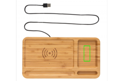 Logo trade ärikingi pilt: Bambusest lauaorganisaator 10W juhtmevaba laadija