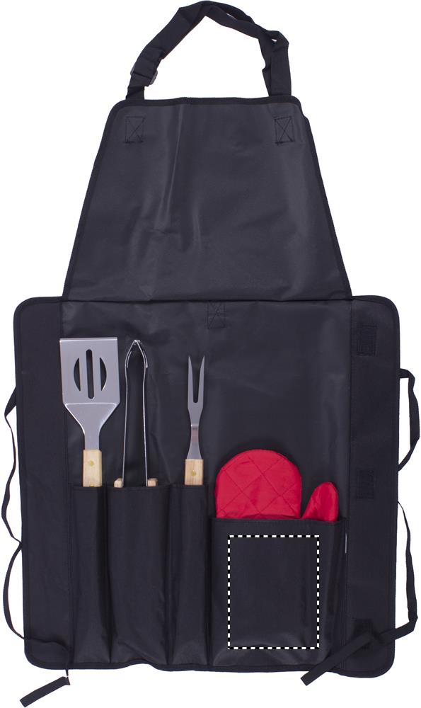 BBQ põll kolme erineva BBQ tööriista ja ühe kindaga. Põll 600D polüestrist.