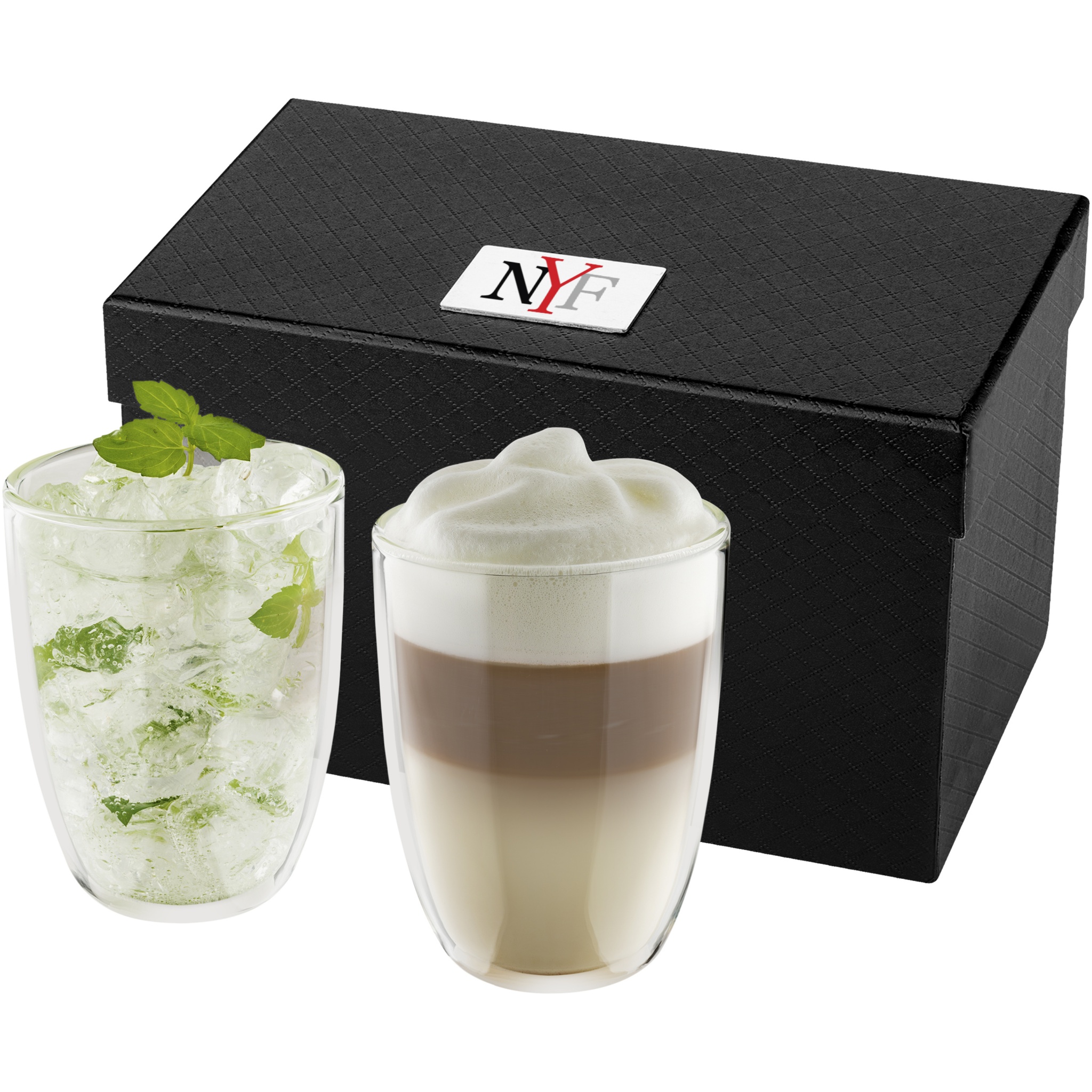 Kaheseinaline isoleeriv 290 ml klaasikomplekt. Ideaalne teie lemmiklatte macchiato, jäätee või kuumade või külmade jookide serveerimiseks. Esitatakse luksuslikus kinkekarbis. Kaasas logoplaat.