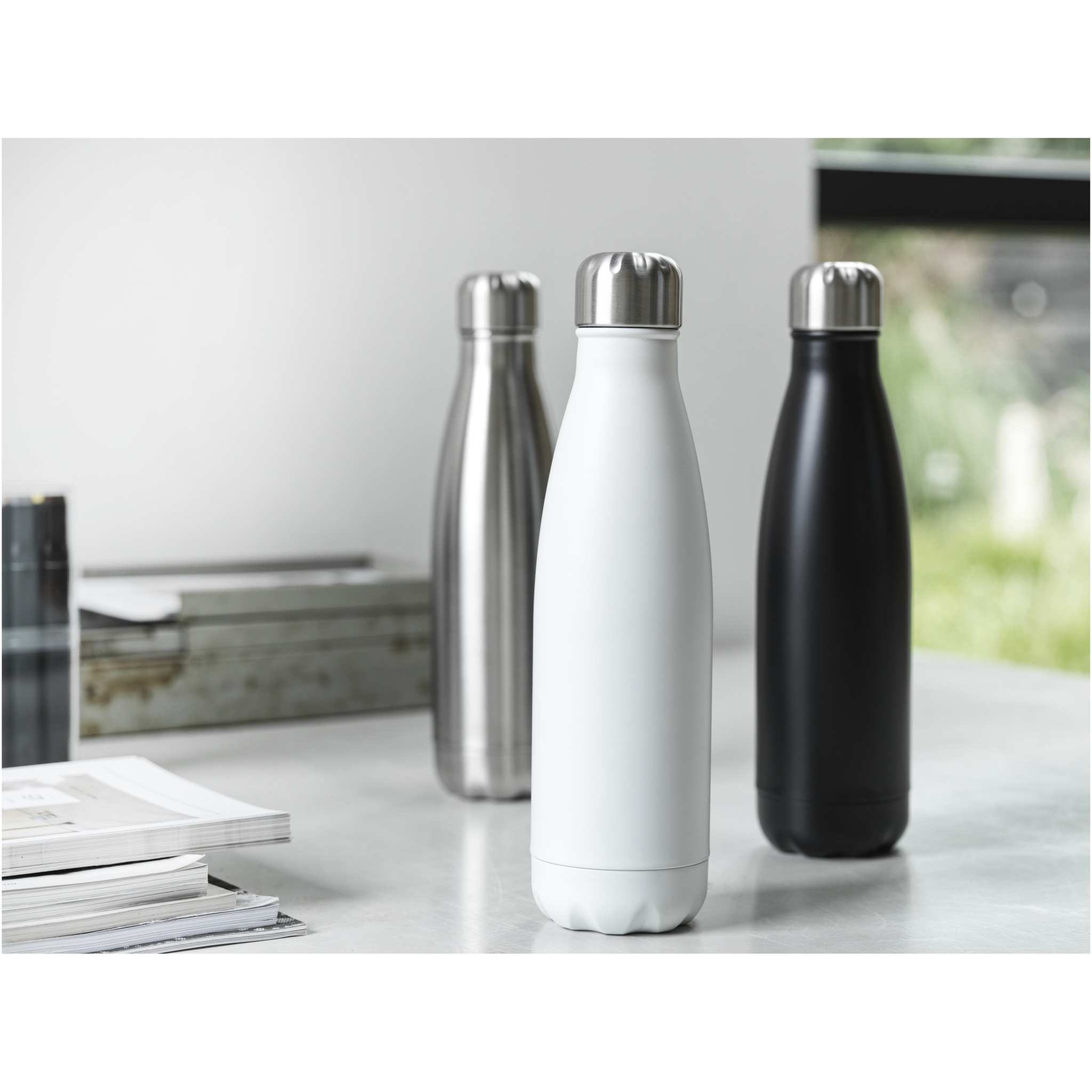 Vaakumisolatsiooniga RCS-sertifikaadiga taaskasutatud roostevabast terasest pudel, millel on ikooniline disain, mis hoiab joogid kuumana või külmana mitu tundi. See klanitud välimusega veepudel, millel on alus, mis sobib enamikesse topsihoidjatesse, on ideaalne reklaamartikkel. Testitud ja heaks kiidetud Saksamaa toiduohutuse seaduste (LFGB) alusel ning ftalaatide sisalduse suhtes testitud vastavalt REACH-määrustele. Maht on 500 ml. Esitatakse taaskasutatud papist kinkekarbis.