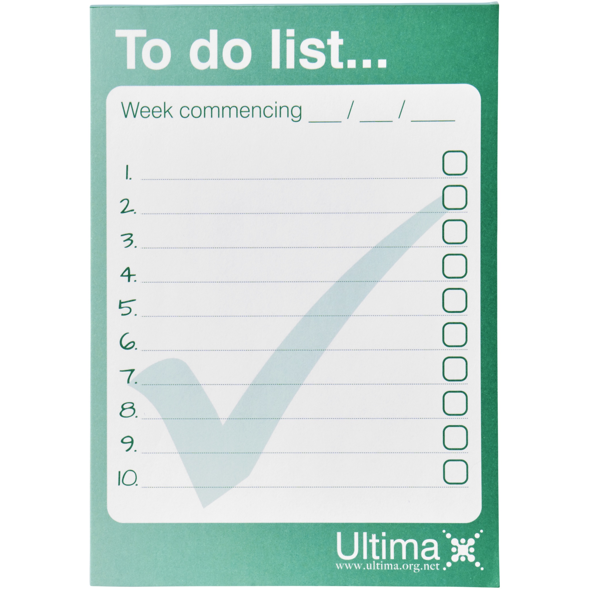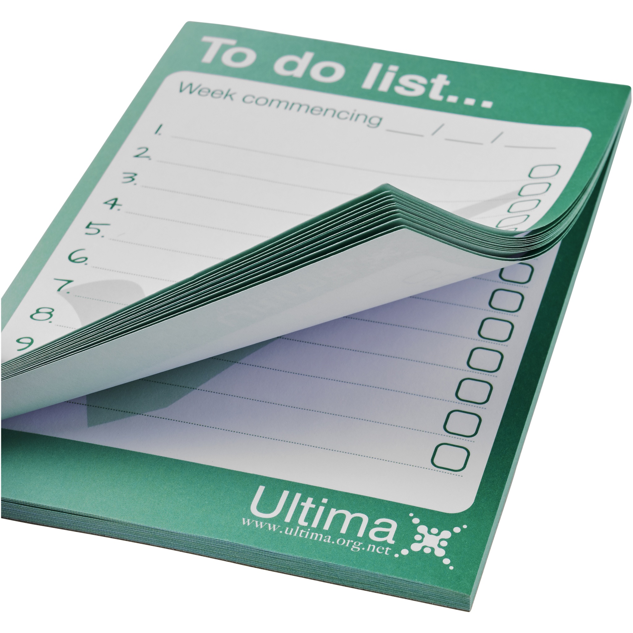 Valge A6 Desk-Mate® märkmik 80 g/m2 paberiga. Igale lehele on saadaval täisvärvitrükk. Saadaval 3 suuruses (25/50/100 lehte).