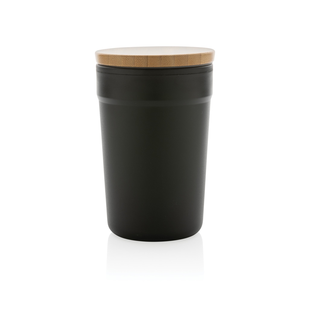 GRS sertifikaadiga taaskasutatud PP kruus bambusest kaanega, must
