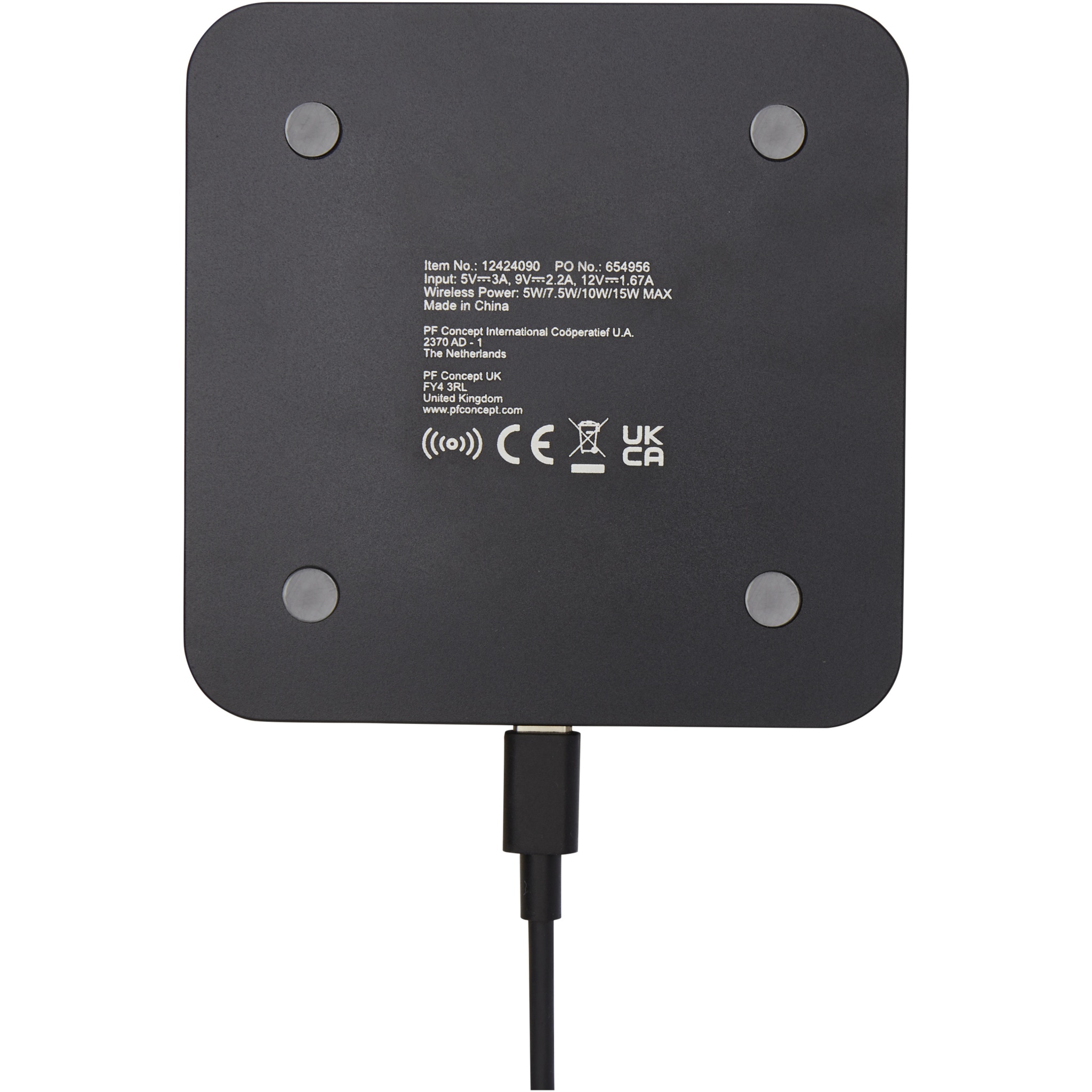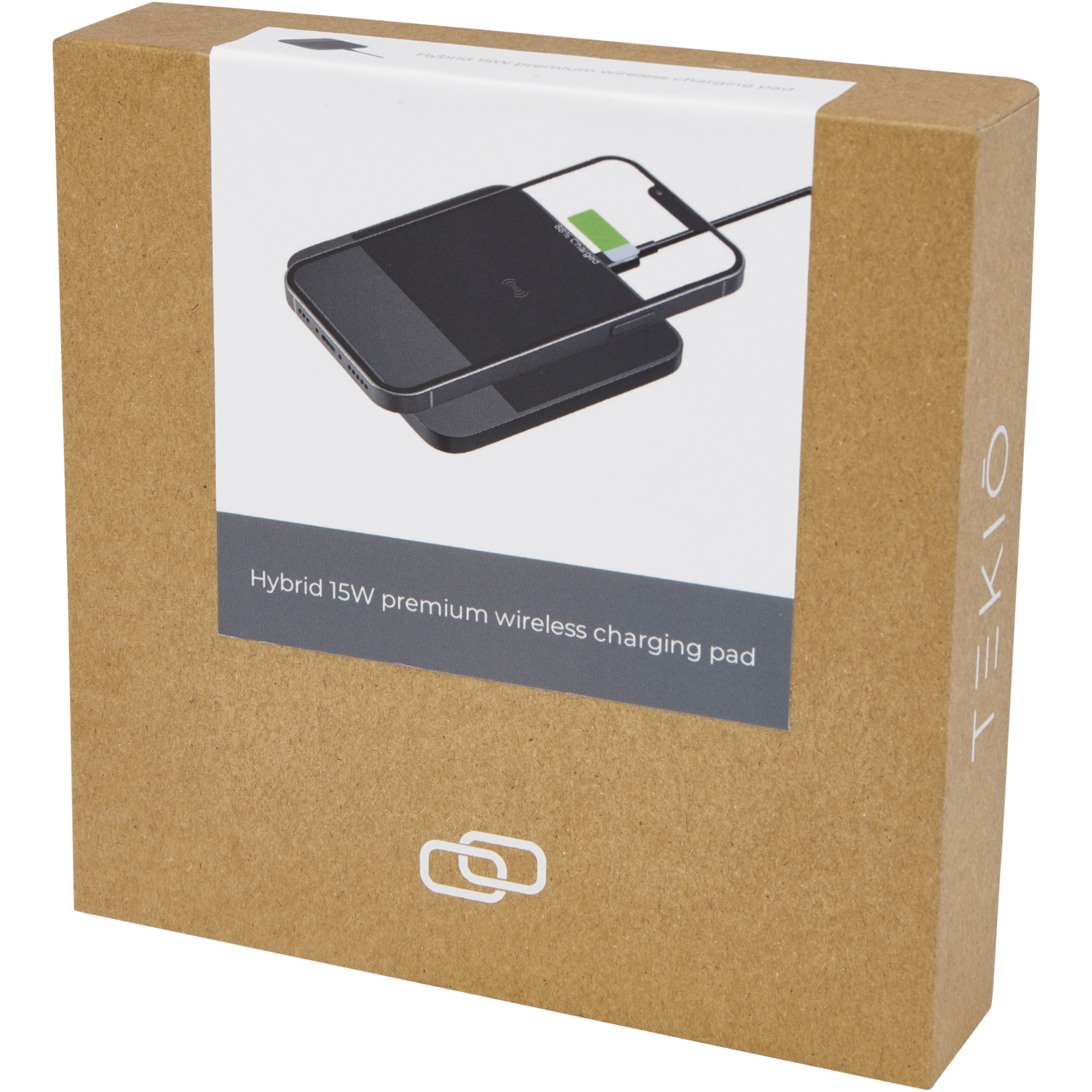 Hübriidne 15 W esmaklassiline juhtmevaba laadimisalus on iga kontorilaua vara. Tänu üliõhukesele disainile mahub see hõlpsasti sülearvutikoti taskutesse. Valmistatud vastupidavast alumiiniumkorpusest koos libisemisvastase TPU-nahast laadimispadjaga. Kuni 15 W juhtmevaba laadimisväljundiga saavad seadmed kiiresti täistoite. Ühildub kõigi Qi seadmetega (iPhone 8 või uuem ja Android-seadmed, mis toetavad juhtmevaba laadimist). Sisaldab sisseehitatud FOD-i (Foreign Object Detection), et tuvastada soovimatud objektid ja tagada sujuv laadimisprotsess. Tarnitakse esmaklassilises värvilise kleebisega jõupaberikarbis. Kaasas C-tüüpi laadimiskaabel.
