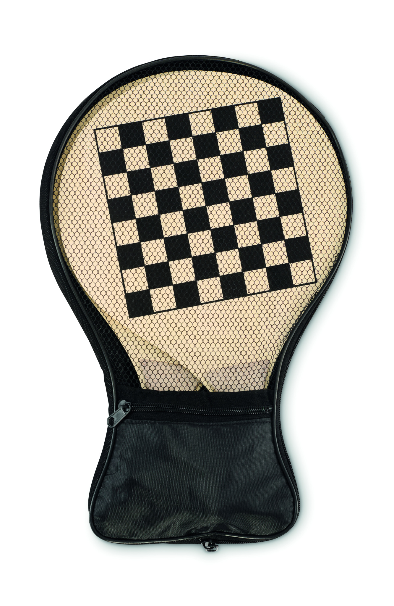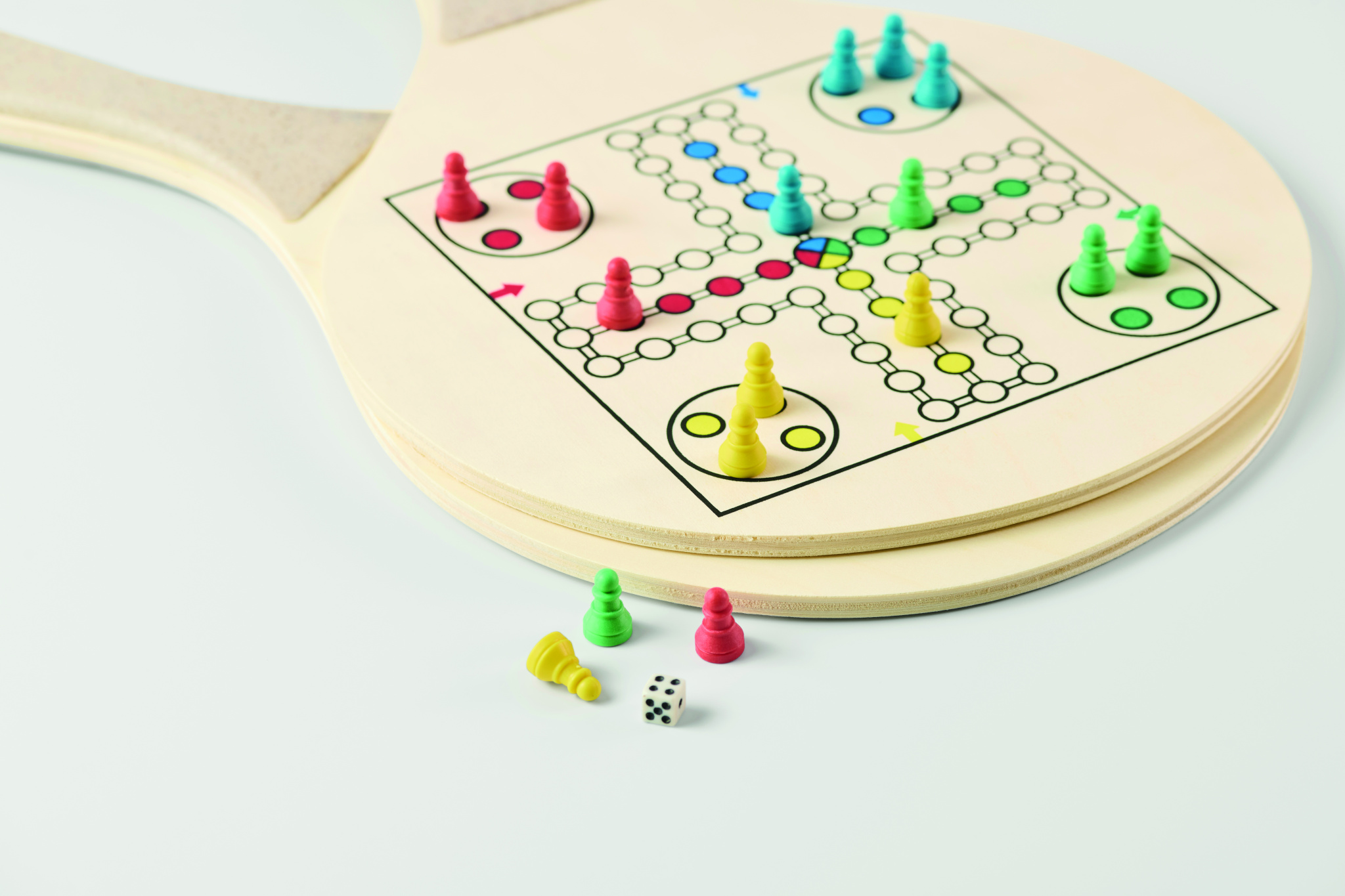 Rannakomplekt kahe vineerist reketiga, millel on male ja ludo mängulaud. Sisaldab ühte TPR-kuuli, täringuid ja malenuppe. Pakendatud RPET-võrgust lukuga kilekotti.