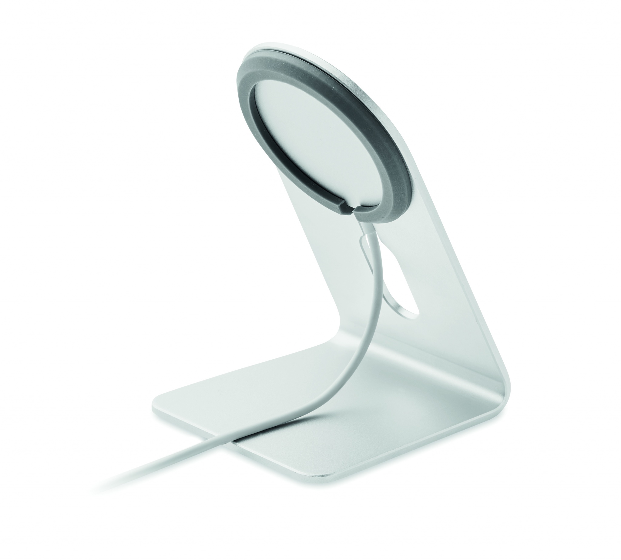 Magnetalumiiniumist kaasaskantav 15 W juhtmeta laadija telefonialusega. Kaasa arvatud täiendav magnetiline metallrõngas, mis toetab teiste mittemagnetiliste juhtmevabade laetavate telefonide laadimist. Väljund: 9V/1,67A (15W) kiireks laadimiseks. Ühildub uusimate Androidide, iPhone® 12 ja uuemate versioonidega.
