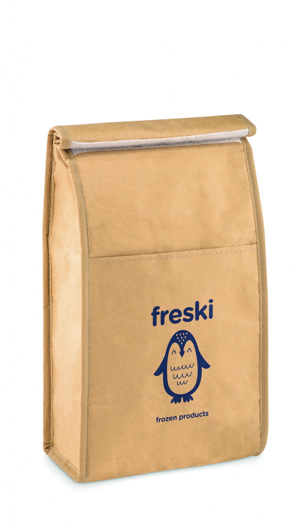 Kootud paberist kootud külmakott esitaskuga. Isolatsioonimaterjal: PE vahtkiht. Mahutavus 3L.