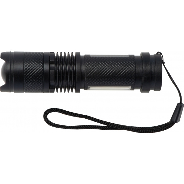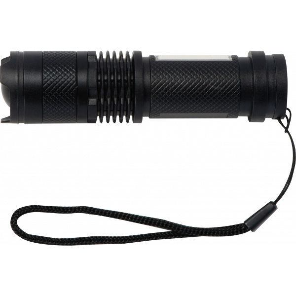 Laetav plastikust COB-taskulamp kahe erineva valgusrežiimiga (tavaline ja vilkuv), samuti reguleeritava fookusega ja veel üks lamp käepidemel. Sealhulgas laadimiskaabel (USB-lt USB-C-porti).