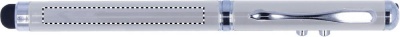 Metallist laserpointer. Valge LED-tuli, punane laserkursor ja pehme puutetundlik ots. Kaasas 3 nööpelemendi patareid. Tarnitakse metallist plekkkarbis.