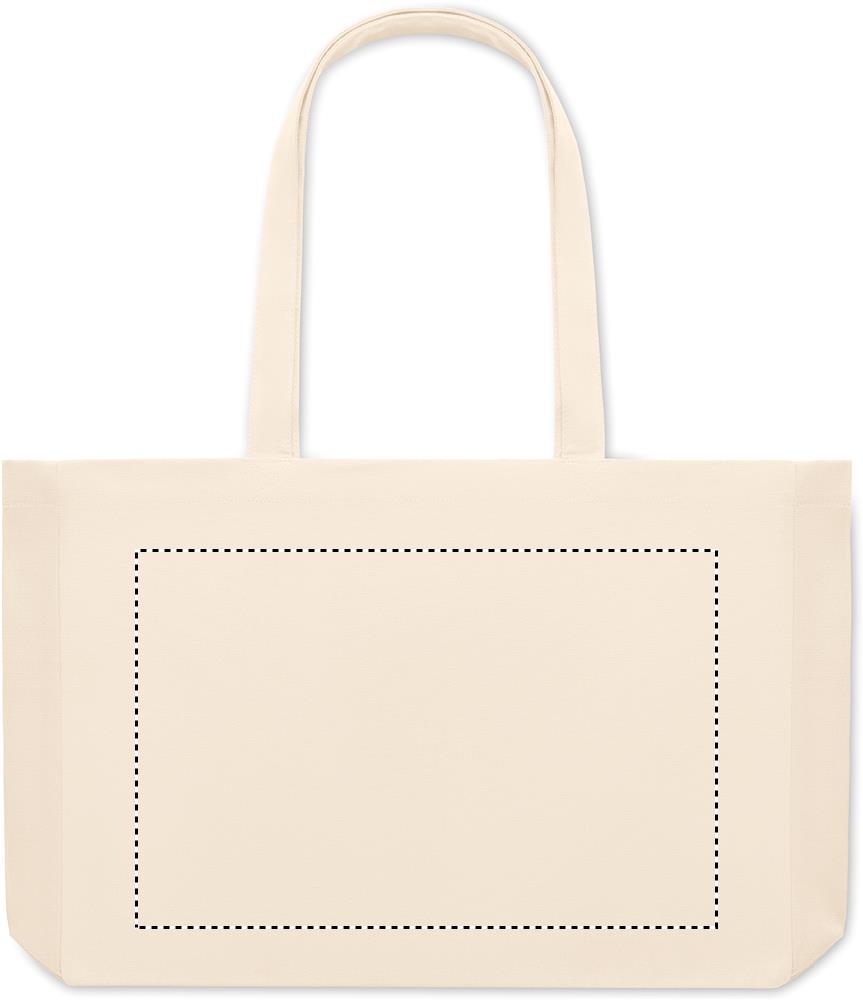 Taaskasutatud lõuendist ostukott või rannakott, 50% puuvill ja 50% taaskasutatud puuvill, pikkade sangade ja servadega. 280 gr/m².