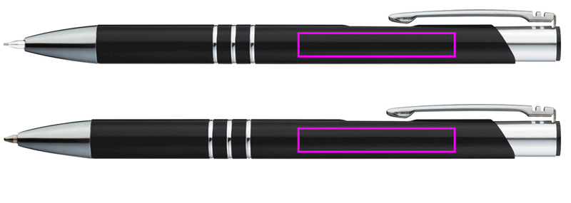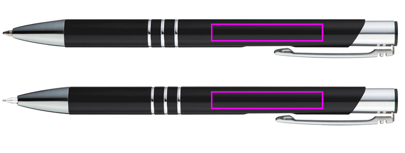 Alumiiniumist kirjutuskomplekt, mis koosneb suure mahutavusega sinise kirjaga pastapliiatsist ja mehaanilisest pliiatsist, millest igaühel on dekoratiivsed rõngad. Teie logo graveeritakse klipist paremale.