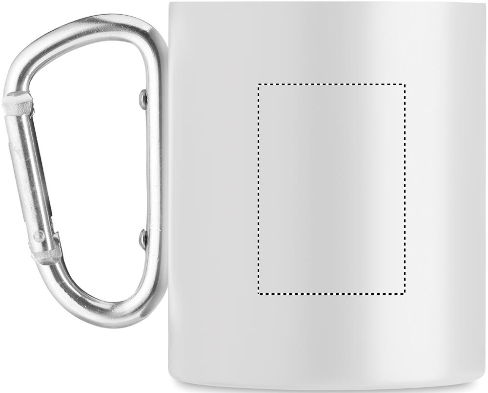 Logotrade reklaamtoote foto: Metallist kruus ja karabiiniga käepide