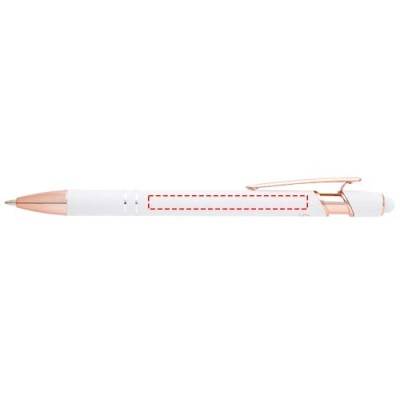 Roosa kuldse viimistlusega Nanna pastapliiatsil on taaskasutatud alumiiniumist silikoonist puutepliiatsiga toru. Taaskasutatud alumiinium vähendab prügilates jäätmete hulka ja aitab säästa loodusvarasid, et vähendada kasvuhoonegaaside heitkoguseid. Tindi värvus: sinine. Kirjutamise pikkus: 800 meetrit. Otsa suurus: 1,0 mm.