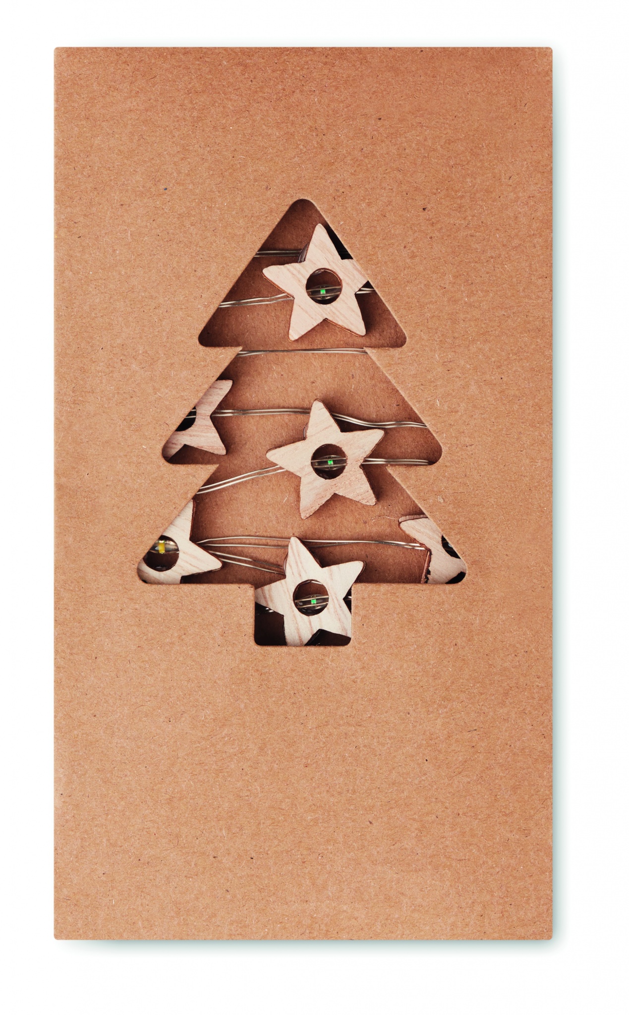 20 puidust tähekujulise LED-tulega nöör. Esitatakse pappkarbis. 2 AA patareid ei kuulu komplekti. Sisse/välja nupp patareikorpuses.
