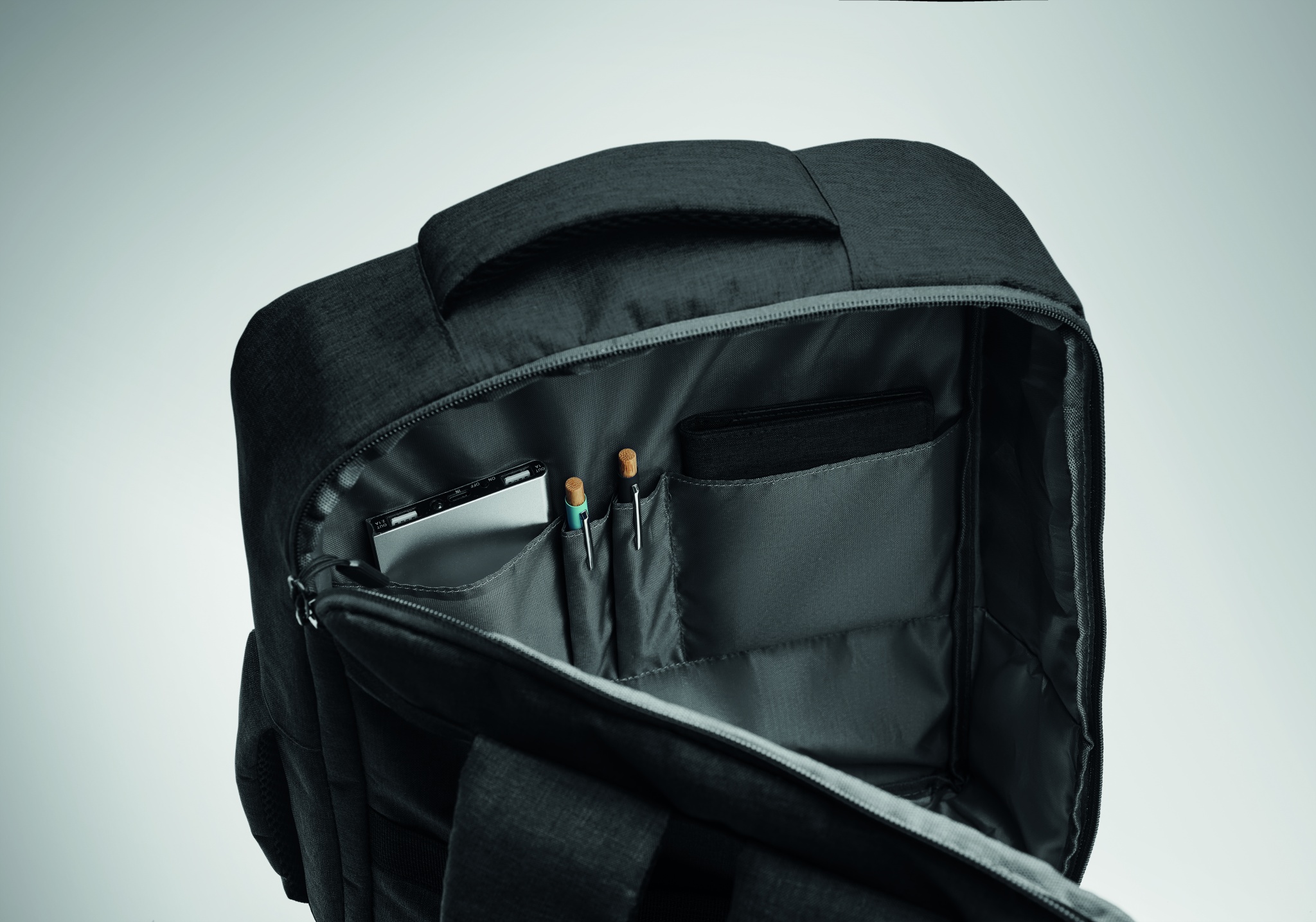 Logo trade ärikingitused foto: 15-tollise sülearvuti seljakott, valmistatud 300D RPET-st ja 210D RPET-voodriga